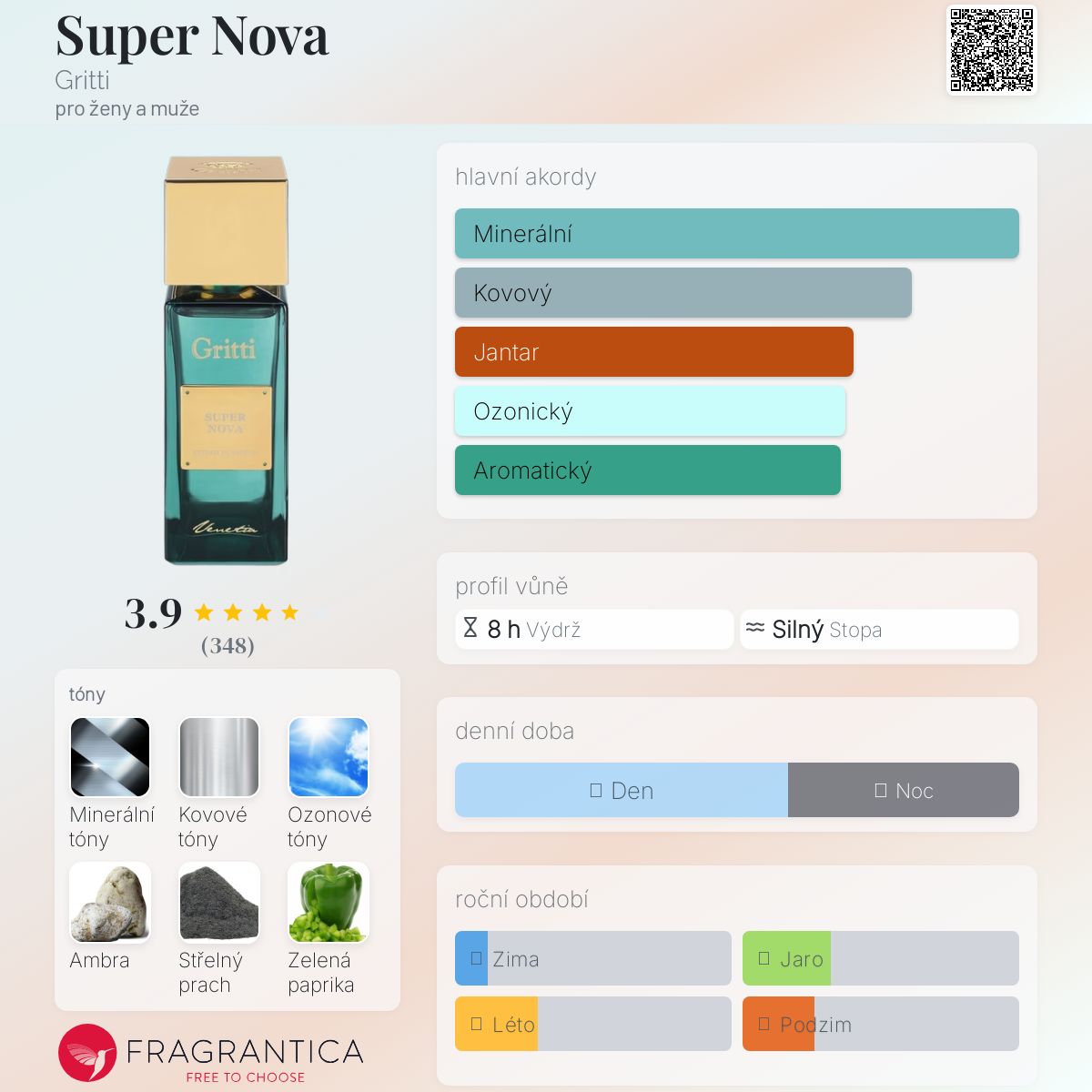Prvním je pyramida: je tak atypická, komplexní a vykreslila jsem si nádherný obrázek toho, jak by mohl parfém znít. Druhým je fakt, že Super Nova je novinka z roku 2024.