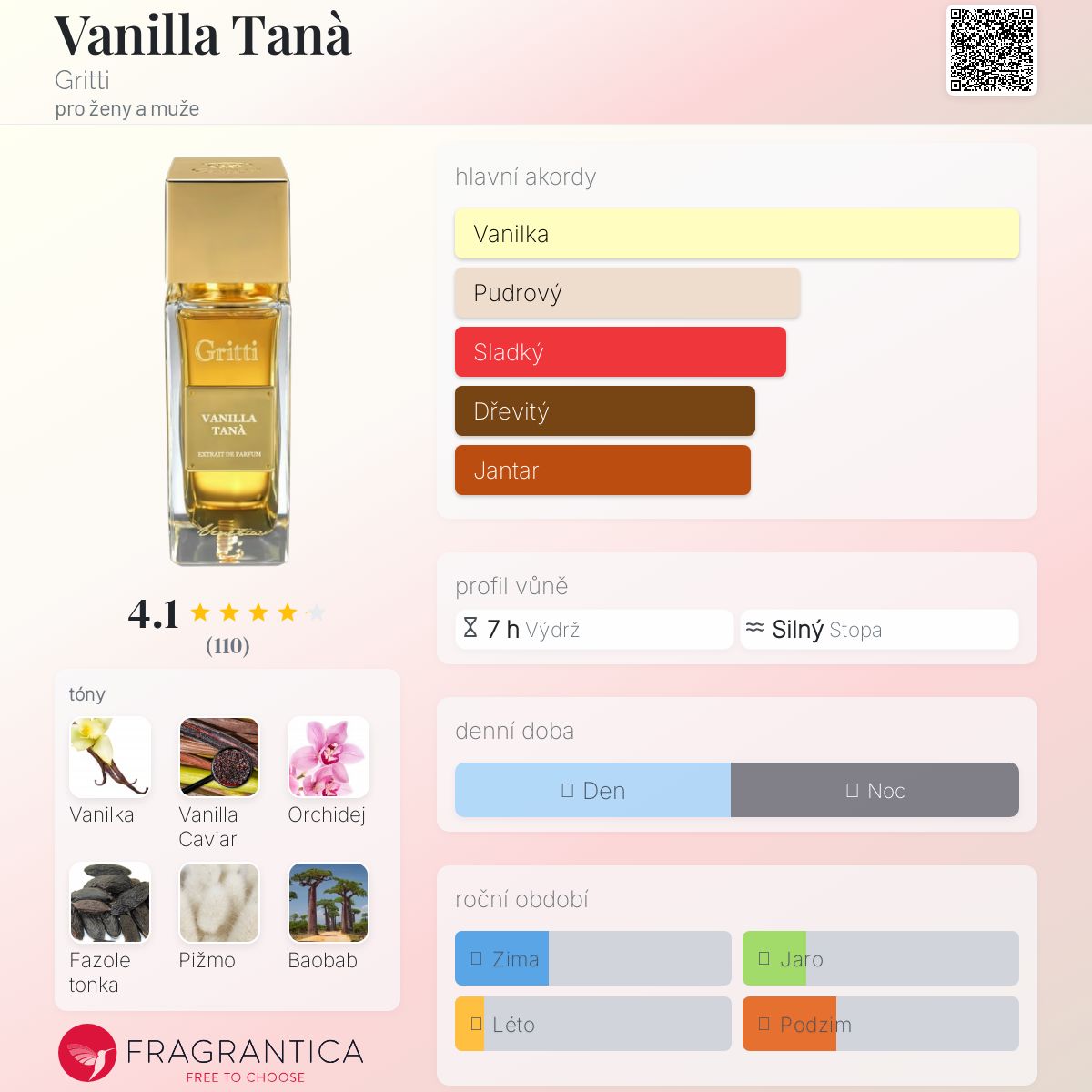 Vanilla Tanà podle Gritti je Orientální Vanilla vůně pro ženy a muže. Toto je nová vůně. Vanilla Tanà byl/a uveden/a v roce 2025. "Nosem" za touto vůní je Luca Gritti.