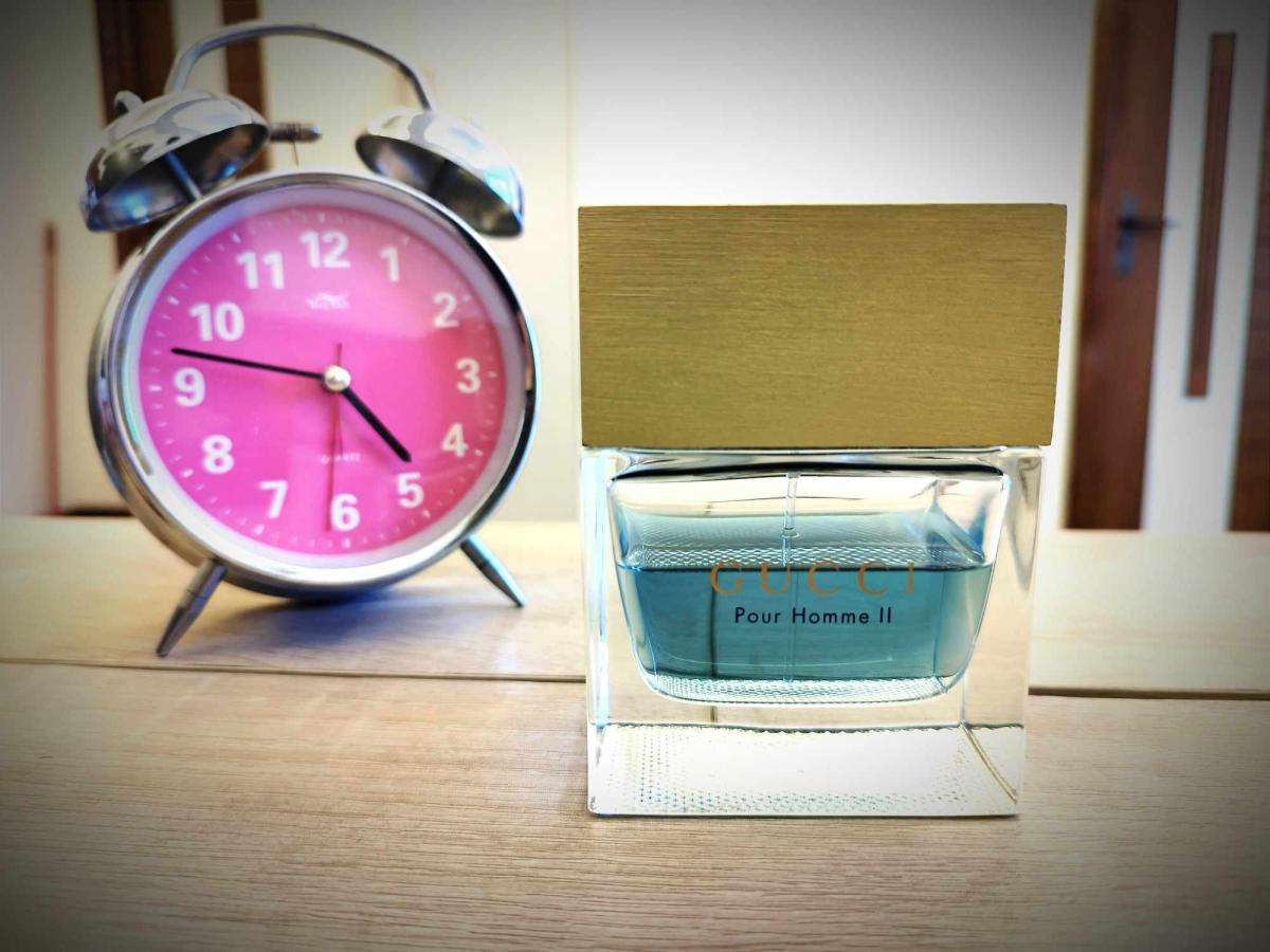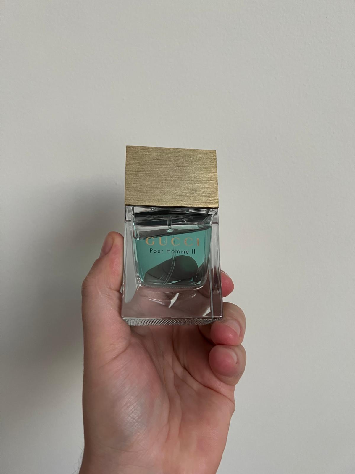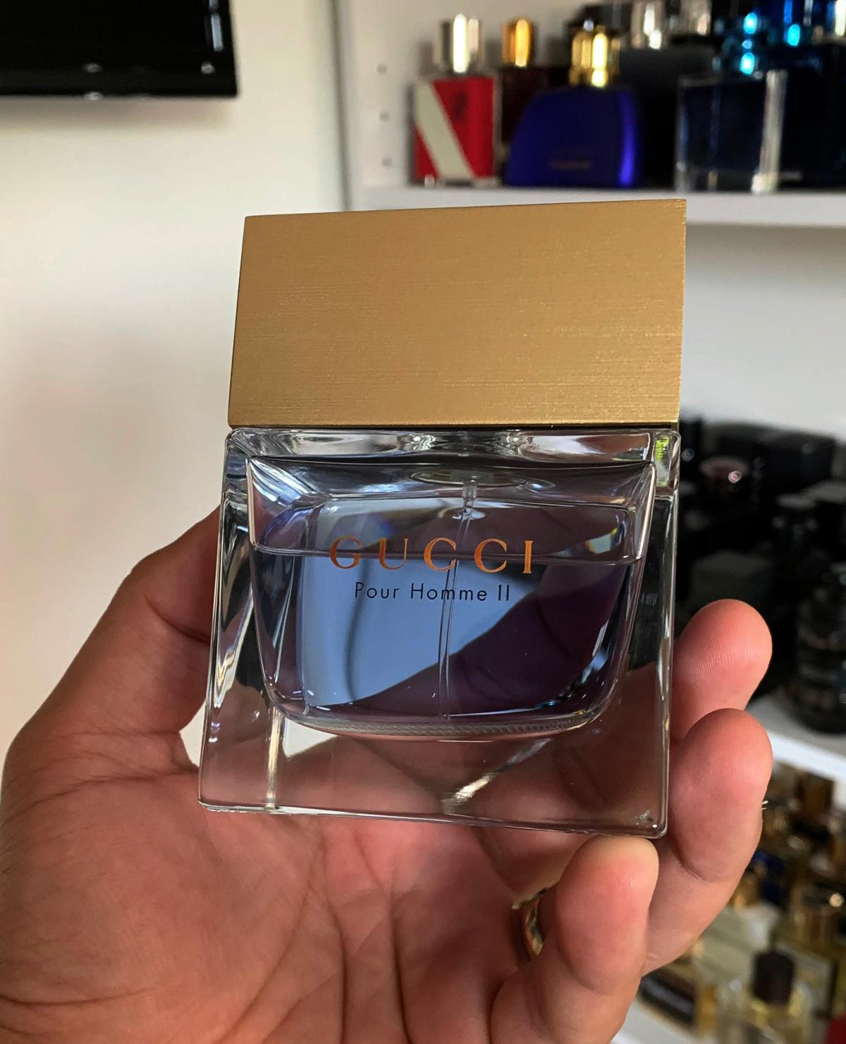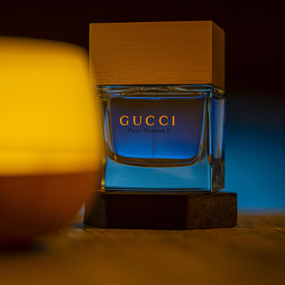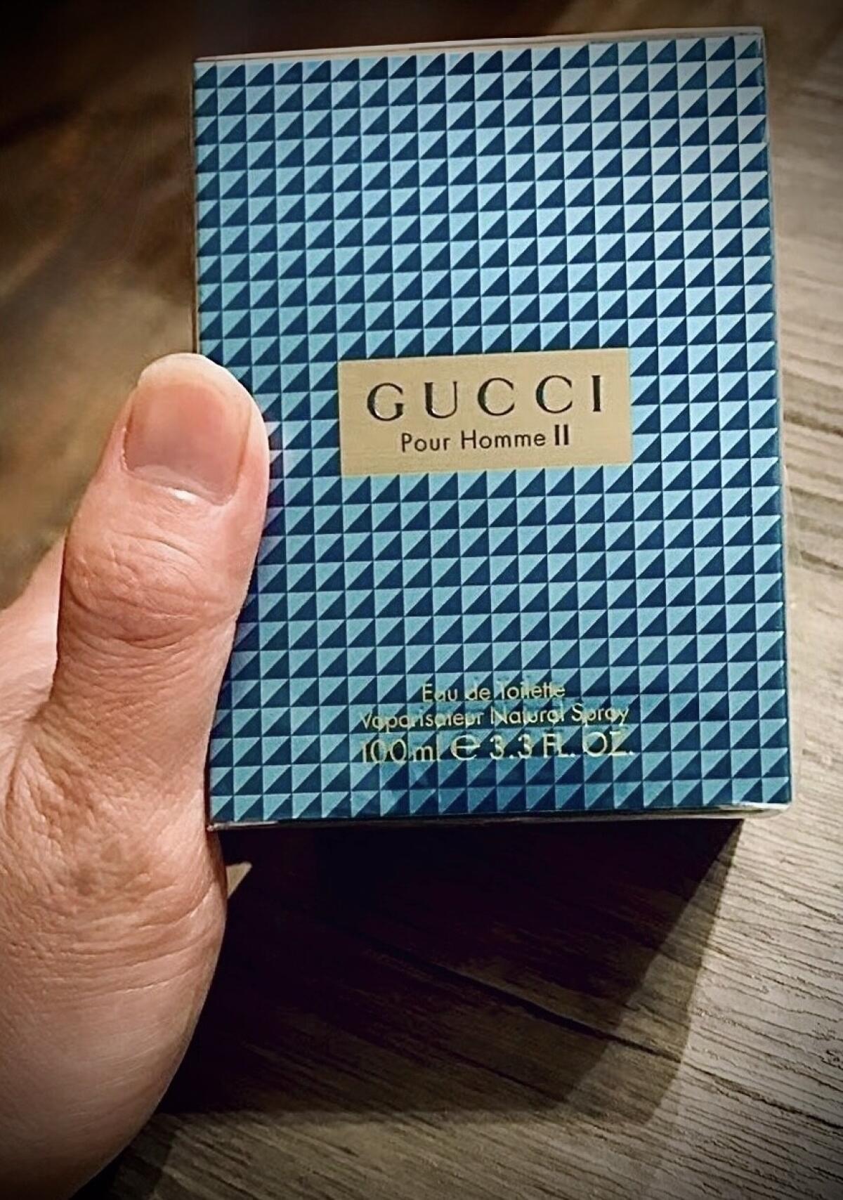 Gucci Pour Homme II podle Gucci je Woody Spicy vůně pro muže. Gucci Pour Homme II byl/a uveden/a v roce 2007. "Nosem" za touto vůní je Karine Dubreuil-Sereni. Vrchní tóny jsou Fialkový list a Bergamot; střední tóny jsouČerný čaj, Skořice a Jamajský pepř ; základní tóny jsou Tabákový list, Myrha, Pižmo a Olivovník.