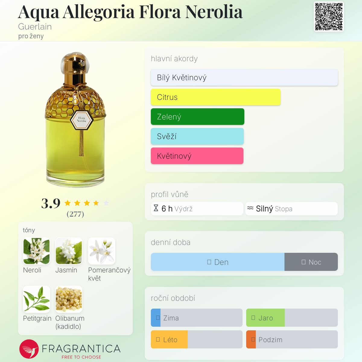 Aqua Allegoria Flora Nerolia podle Guerlain je Floral vůně pro ženy. Aqua Allegoria Flora Nerolia byl/a uveden/a v roce 2000. "Nosem" za touto vůní je Jean-Paul Guerlain. Vrchní tóny jsou Neroli a Petitgrain; střední tóny jsouJasmín a Pomerančový květ ; základní tón je Olibanum.