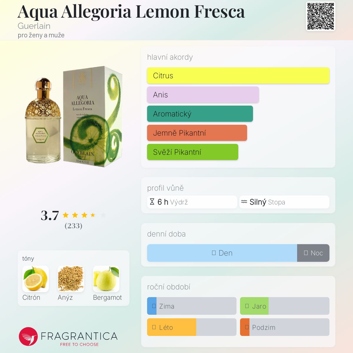 Aqua Allegoria Lemon Fresca podle Guerlain je Citrus vůně pro ženy a muže. Aqua Allegoria Lemon Fresca byl/a uveden/a v roce 2003. "Nosem" za touto vůní je Jean-Paul Guerlain.