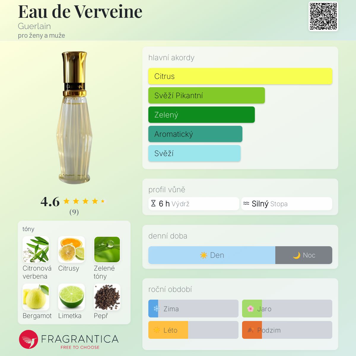 Eau de Verveine podle Guerlain je Citrus Aromatic vůně pro ženy a muže. Eau de Verveine byla spuštěna během 1890. "Nosem" za touto vůní je Aime Guerlain.