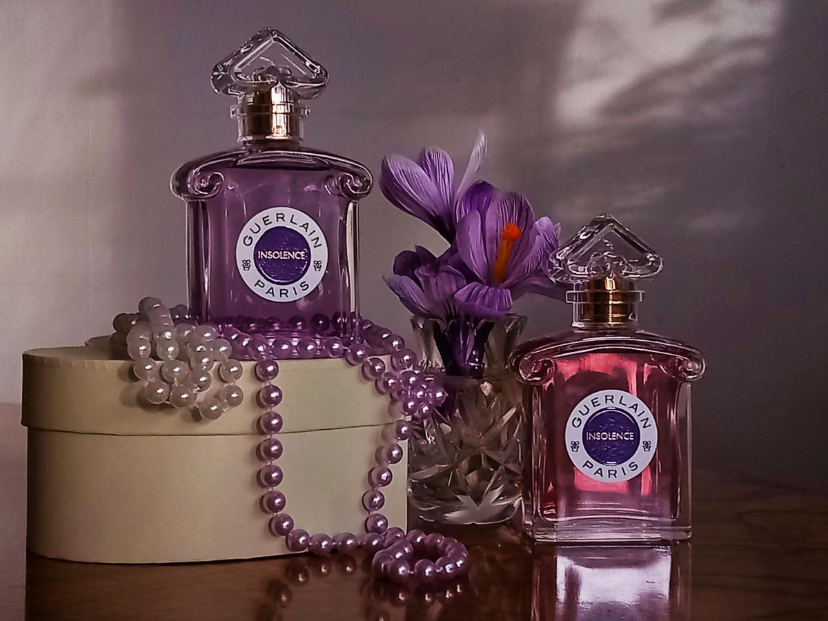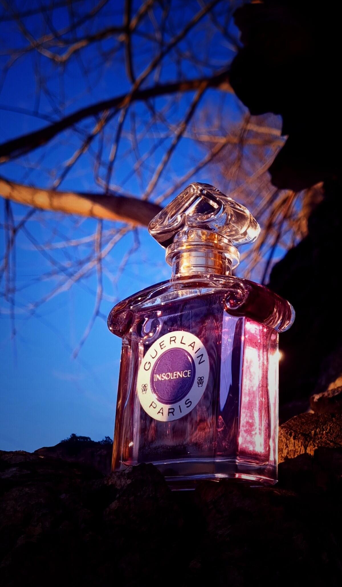 Insolence (edt) z originálního flakonu "létajícího talíře" byl jedním z mých nejoblíbenějších parfémů v době, kdy se ještě vyráběly. Byl podobný edp, ale s ostřejším malinovým nádechem. Došla jsem si pro ni a málem jsem si koupila edp, čehož jsem litovala, že jsem to neudělala, protože krátce poté byla ukončena. Pak přišly verze s včelími lahvičkami. Nejsem žádný reformulační snob, ale svou milovanou Insolence jsem v nich nikde nepoznala. Voněly jako velmi zředěná, extrémně slabá verze fialkových bonbonů. Homeopatická verze fialových bonbonů, dodal bych. Smířila jsem se s tím, že jsem se rozloučila s Insolence, jak jsem ji znala. Pak přišla tato nová verze flakonu a já si koupila edp, když jsem měla možnost. Mohu říct, že jsou stejné jako originál, snad jen s trochu menší siláží, což je, pozor, asi dobře, protože originály byly silné a mohly by udusit kolemjdoucí.
