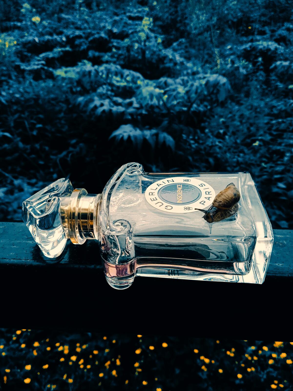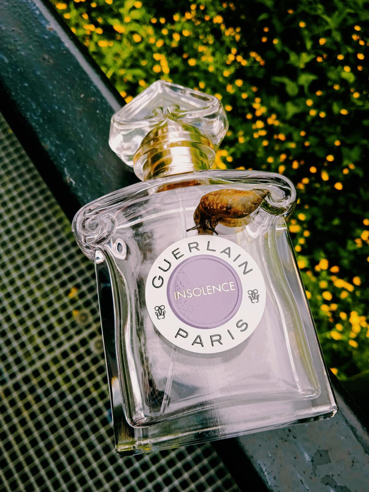 Našel jsem jednu z těchto lahví na prodej, naprosto divokou, a bez vteřiny váhání jsem ji koupil. Neměla jsem v plánu koupit si Insolence ani nic podobného, ale lahvička (stejná jako La Petite Robe Noire nebo Mitsouko, ale v objemu 75 ml) vypadala krásně v kombinaci s tou charakteristickou barevnou šťávou.