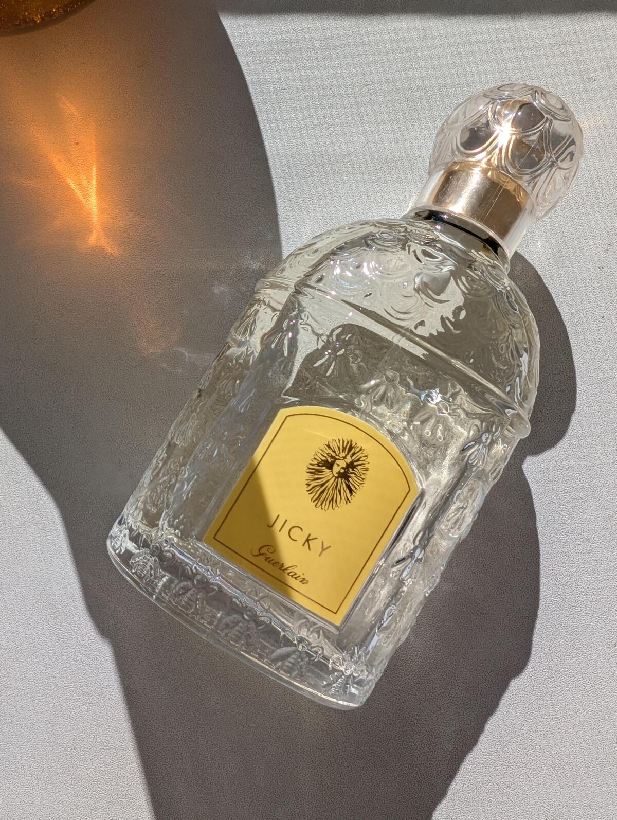 Když se necítím dobře, toužím po Jickyho uklidňující náruči. Je jako bylinná deka s levandulovým čajem a uklidňuje mou duši. Občas trpím migrénami a vyhledávám ji, aby utlumila mé potíže. Lék v lahvičce. Jicky mám samozřejmě ráda pořád, ale hlavně tehdy, když potřebuji extra dávku starostlivého doteku. Jicky má mé srdce i duši.