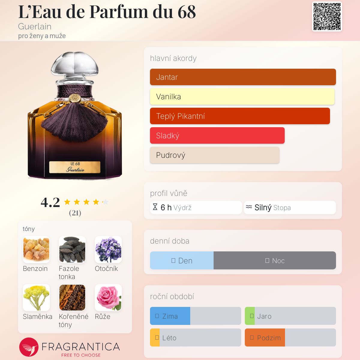 L’Eau de Parfum du 68 podle Guerlain je Woody Spicy vůně pro ženy a muže. L’Eau de Parfum du 68 byl/a uveden/a v roce 2016. "Nosem" za touto vůní je Thierry Wasser.