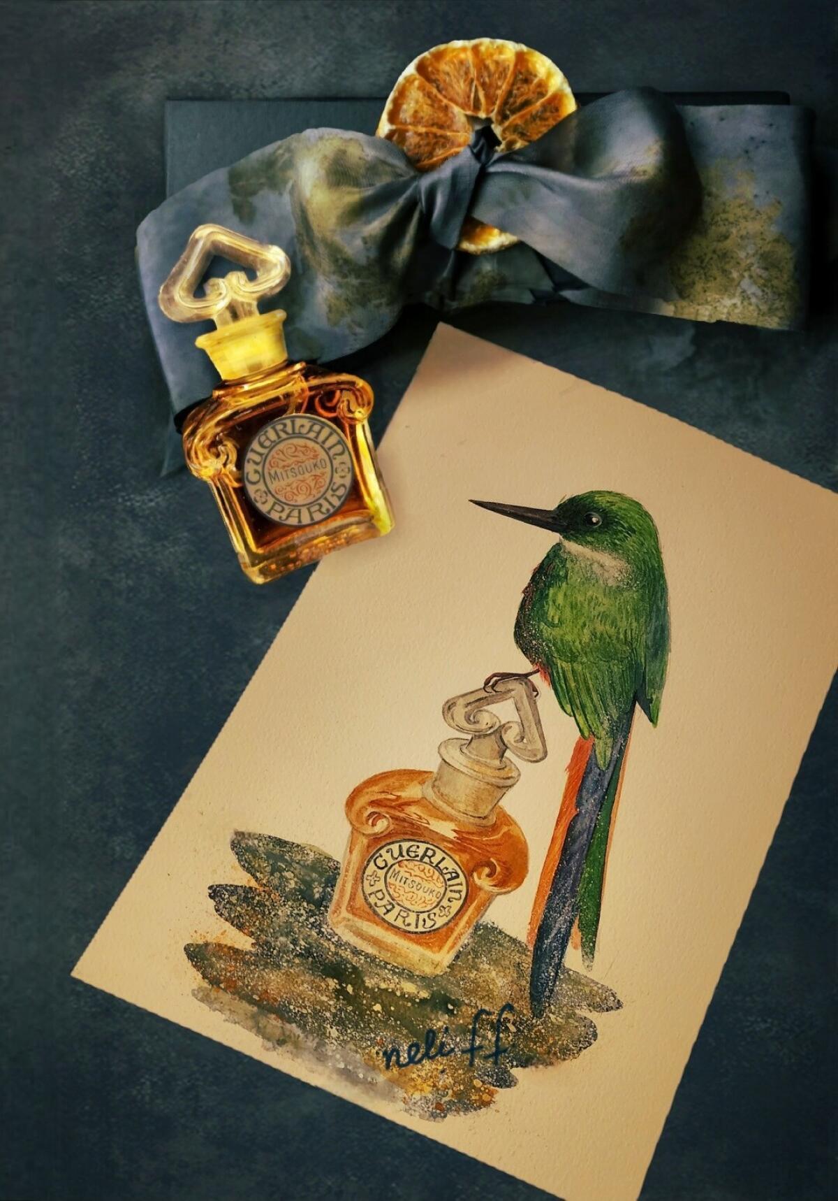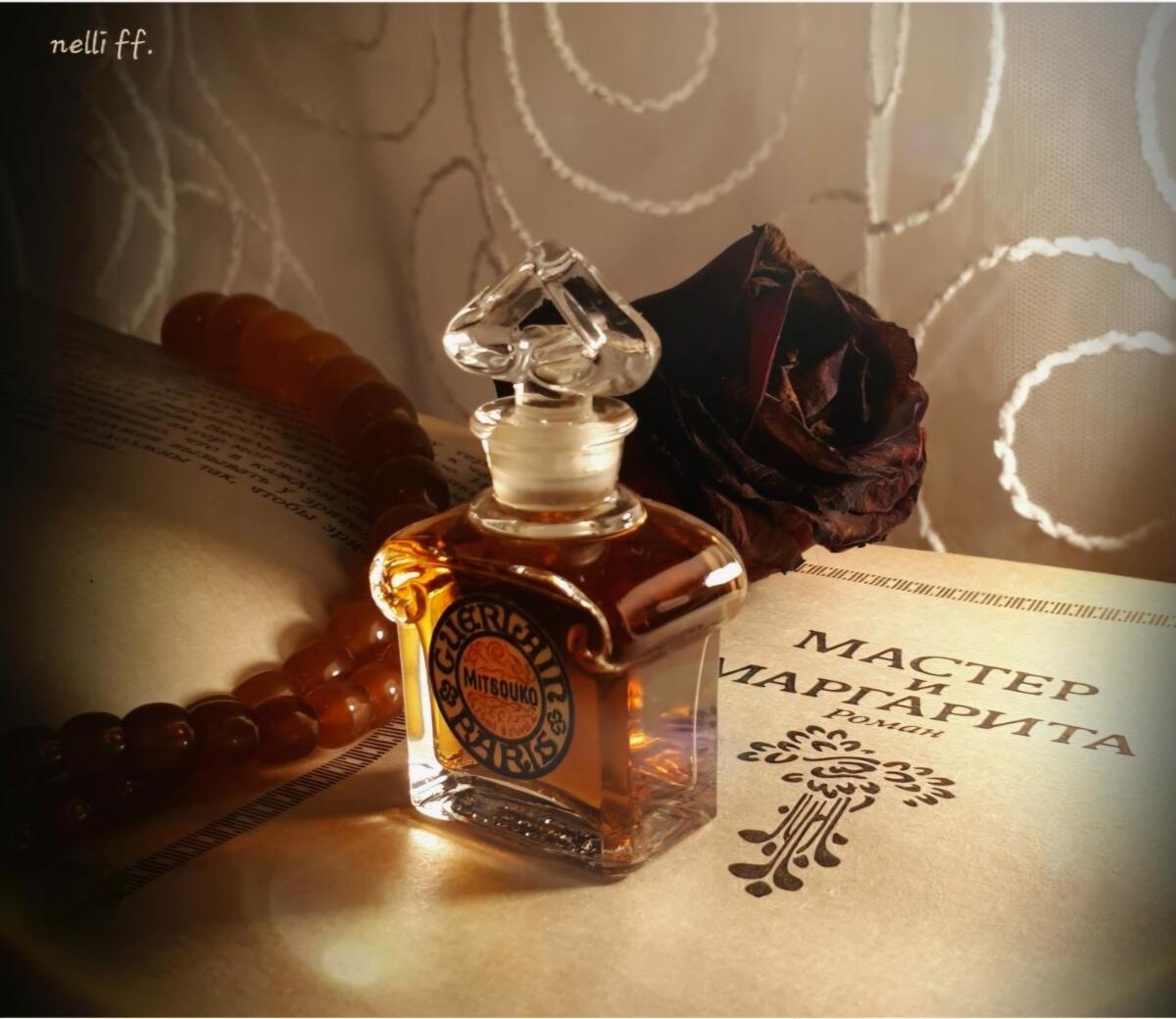 Stejně jako jiné staré Guerlainy mi Mitsouko nevoní tím, co má evokovat (Mitsouko, jméno, které v japonštině znamená tajemství, byla krásnou hrdinkou románu Clauda Farrèra Bitva, velmi slavného na počátku století a dnes poněkud zapomenutého: Mitsouko byla manželkou velkého admirála japonského námořnictva Jorisaky, který prožil vášnivý a nemožný milostný příběh s Angličanem Herbertem Ferganem, v křečovitém kontextu japonských tradic a doby obnovy v zemi vycházejícího slunce). Mitsouko mi nevoní ničím japonským, ani ve mně nevyvolává myšlenky na bouřlivé vášně. Také mi připadá jako parfém na světelné roky vzdálený od jiných silnějších chypre parfémů, jako je Aromatics Elixir nebo klasický Femme de Rochas.
