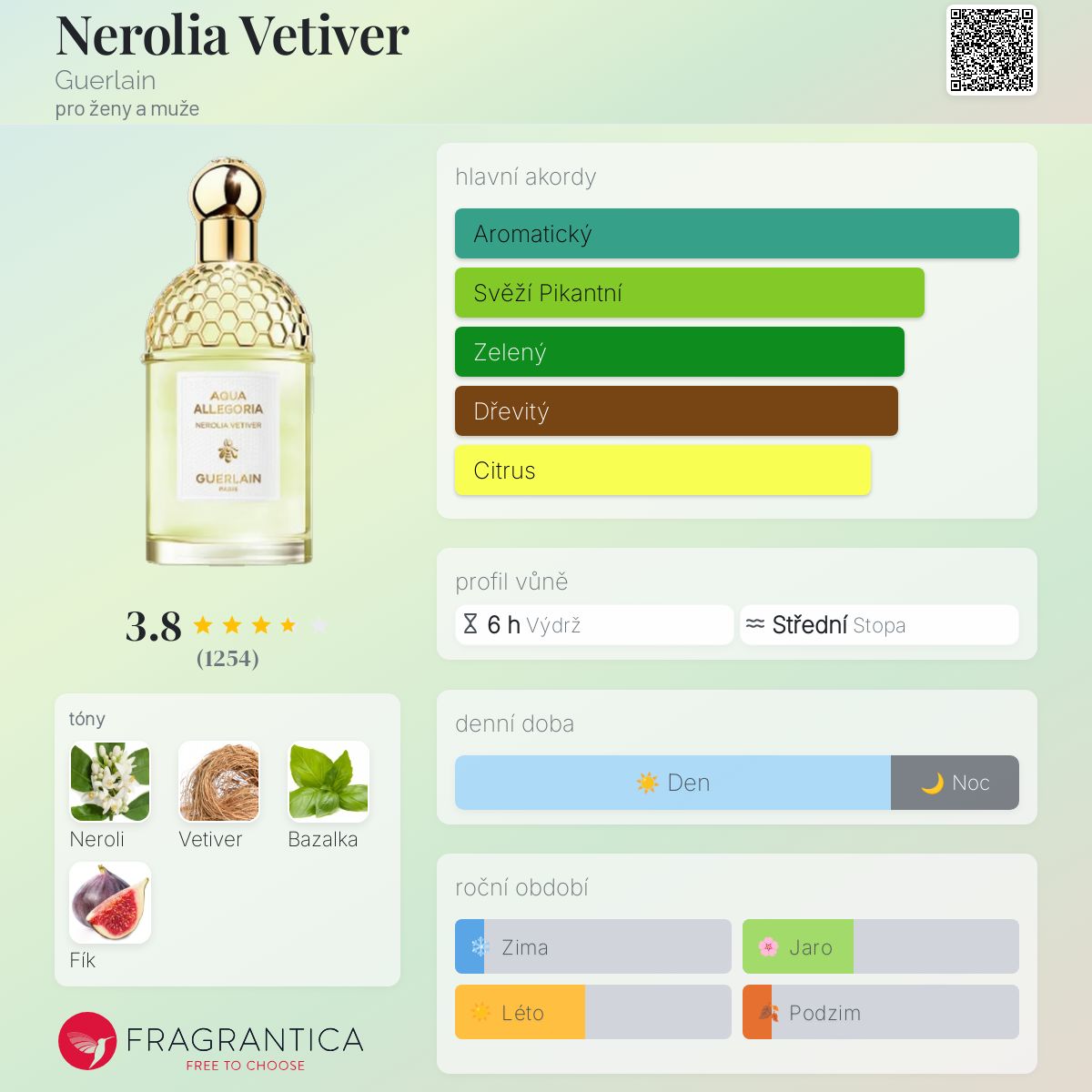 Novinkou na pultech parfumerií je vůně Aqua Allegoria od Guerlain, Nerolia Vetiver. Nóta neroli okamžitě exploduje, je jiskřivá, bublinková a doprovázená jistou mléčnou vůní, kterou nepochybně dodává fík. Vetiver se objevuje zpovzdálí, v žádném případě však nepřebíjí primární charakteristiku této toaletní vody, která zůstává silně zaměřena na svěžest neroli. Rozhodně nic tak výjimečného. Příjemná letní volba, pokud však hledáte aromatickou vůni, která není plochá.