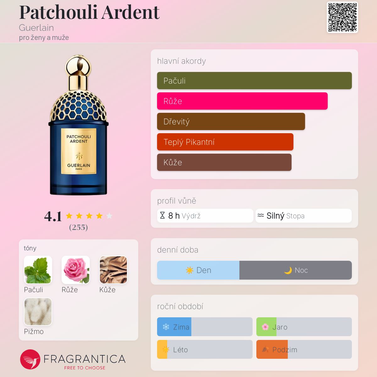 Patchouli Ardent podle Guerlain je Woody Floral Musk vůně pro ženy a muže. Toto je nová vůně. Patchouli Ardent byl/a uveden/a v roce 2024. "Nosem" za touto vůní je Thierry Wasser.