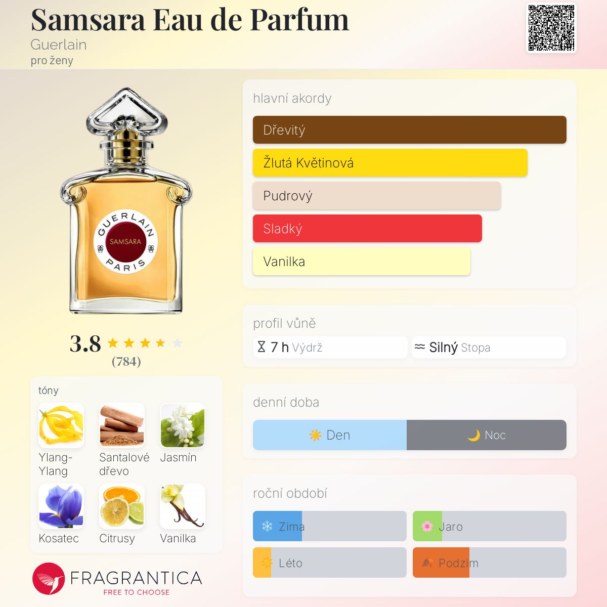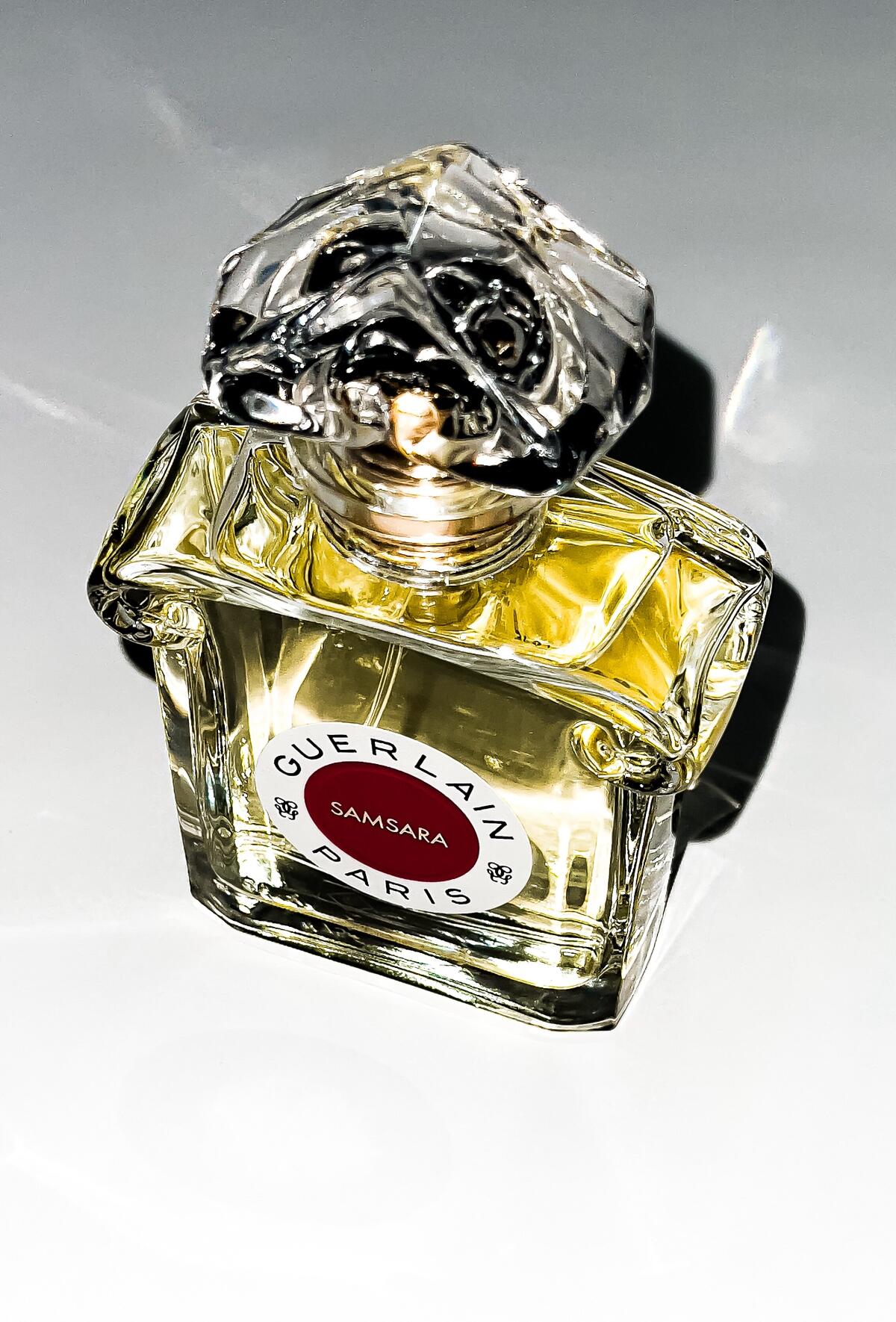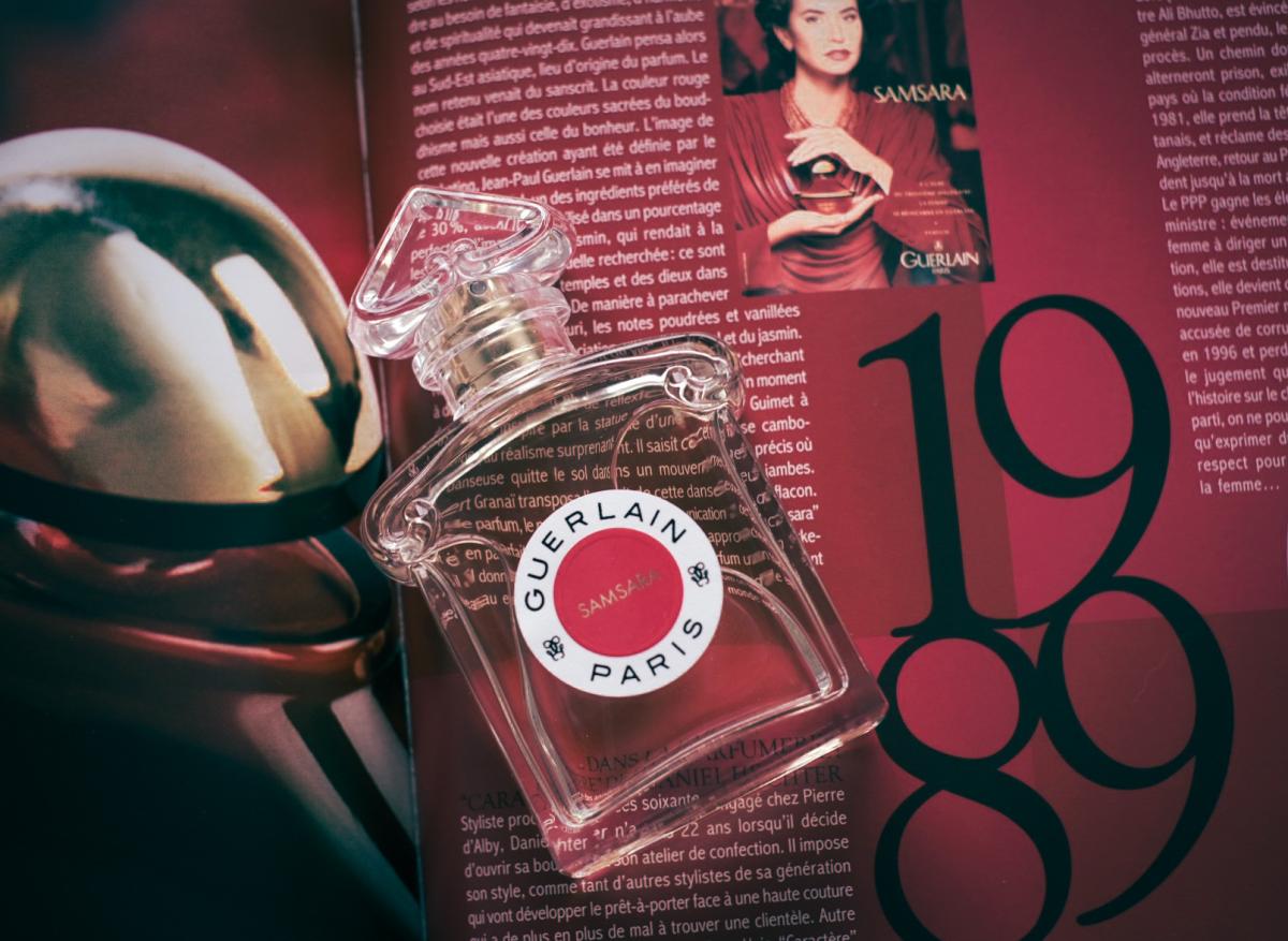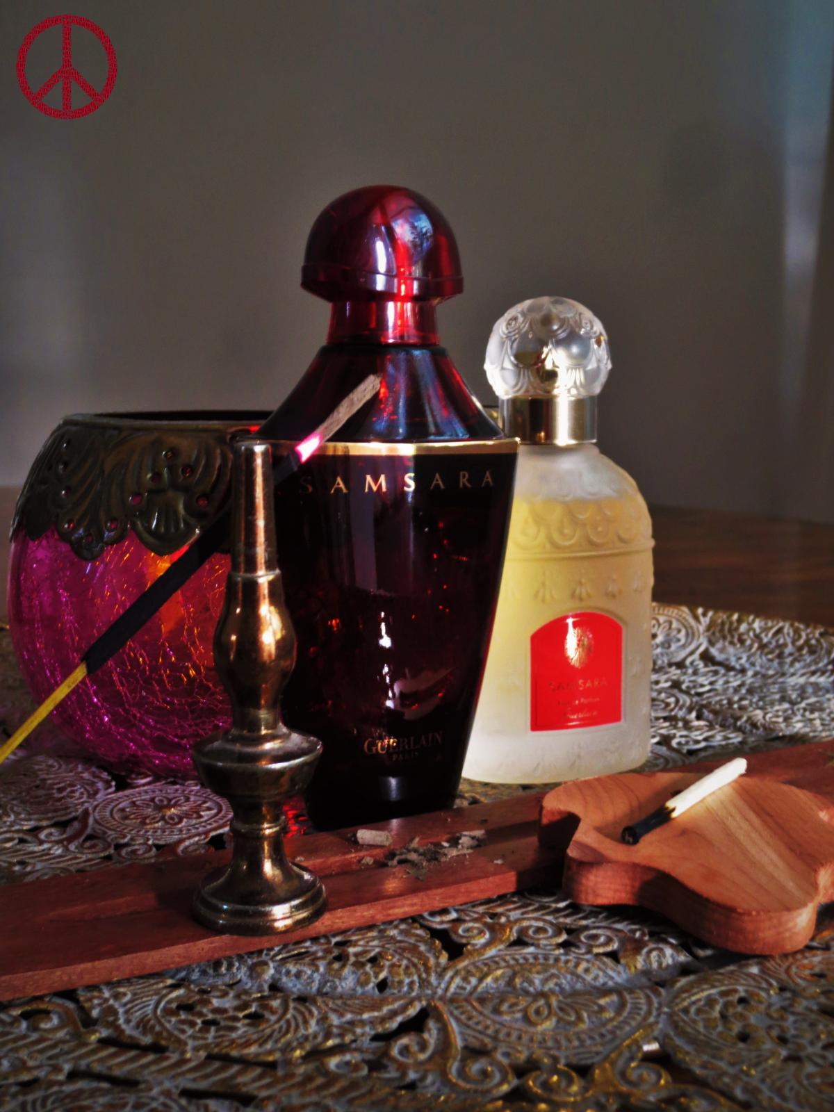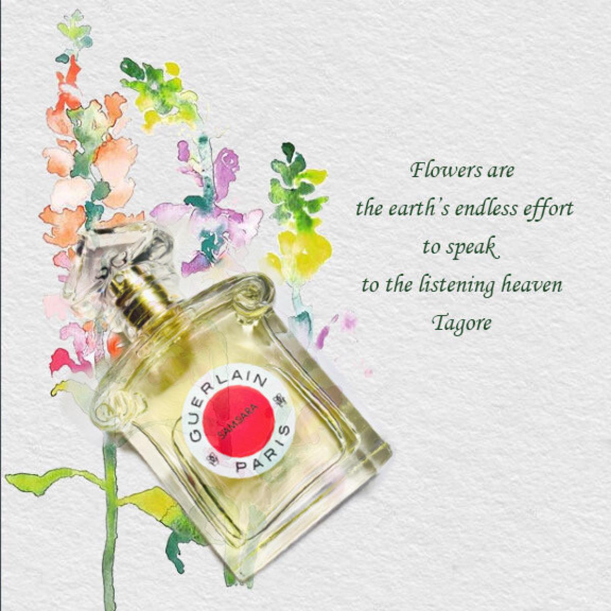Samsara Eau de Parfum podle Guerlain je Floral Woody Musk vůně pro ženy. Samsara Eau de Parfum byl/a uveden/a v roce 2021. Vrchní tón je Citrusy ; střední tóny jsouYlang-Ylang a Jasmín ; základní tóny jsou Santalové dřevo, Kosatec, Vanilka a Fazole tonka.