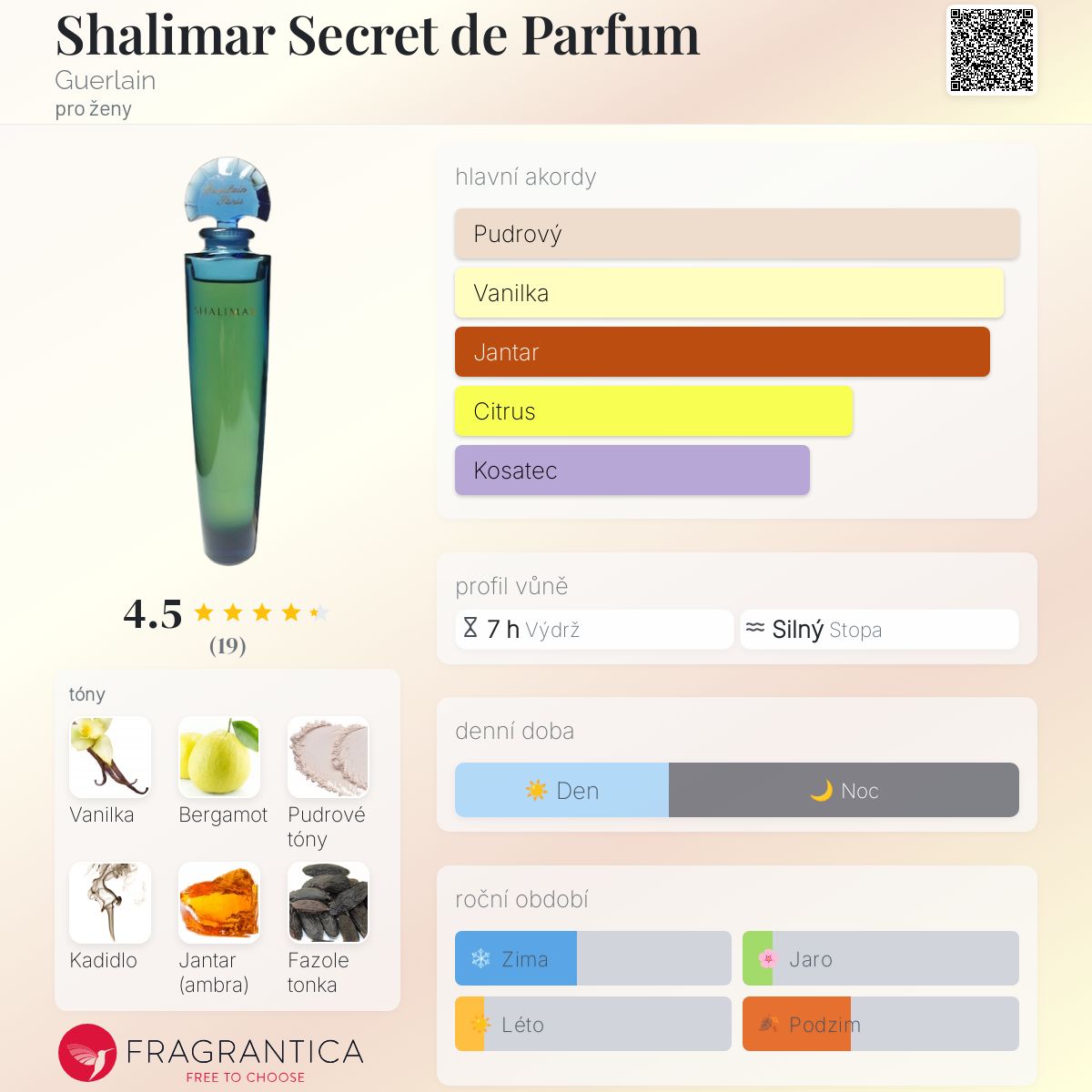 Shalimar Secret de Parfum podle Guerlain je Orientální vůně pro ženy. Shalimar Secret de Parfum byl/a uveden/a v roce 2010.