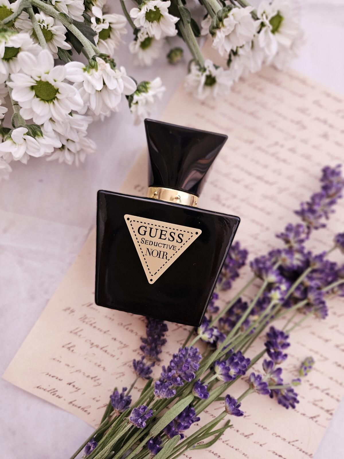 V parfému Guess jsou absolutními protagonisty vanilka a kosatec. Vanilka se mi zdá být velmi Guerlainovská (připomíná mi vanilku v Shalimaru). V anglických recenzích jsem četla, že ji přirovnávají k Dior Addict, která je také velmi vanilková. Seductive Noir je také dost omračující. Je to parfém, který má i přes svou koncentraci (toaletní voda) velkou délku a mírnou stopu, podobnou také Mon Guerlain. Myslím, že je také velmi univerzální.