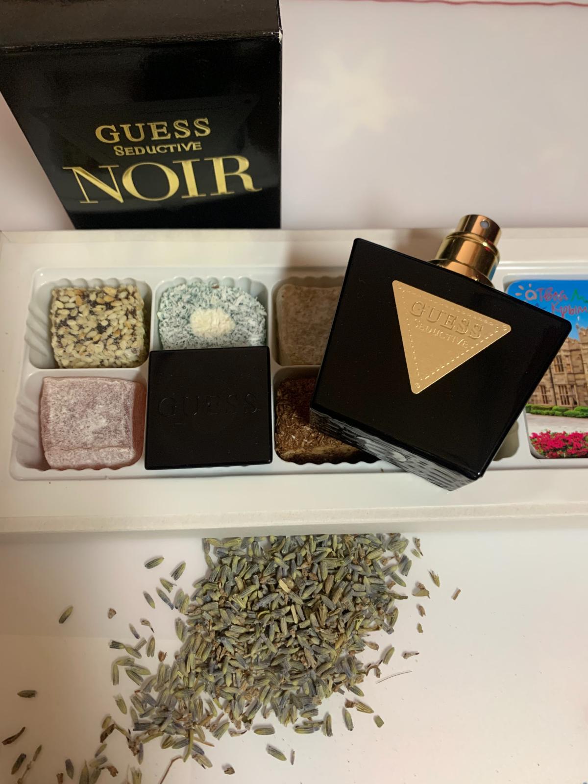 Seductive Noir je hned na první pohled mnohem vanilkovější než Mon Guerlain. Podobnost je ovšem nepopiratelná. Velký rozdíl spočívá v jejich vonných tónech: Guerlain s levandulí a Guess se šalvějí. Obě mají onen aromatický a bylinný vrchní tón, který mnozí označují za mužný, ale který je lahodný a velmi návykový.