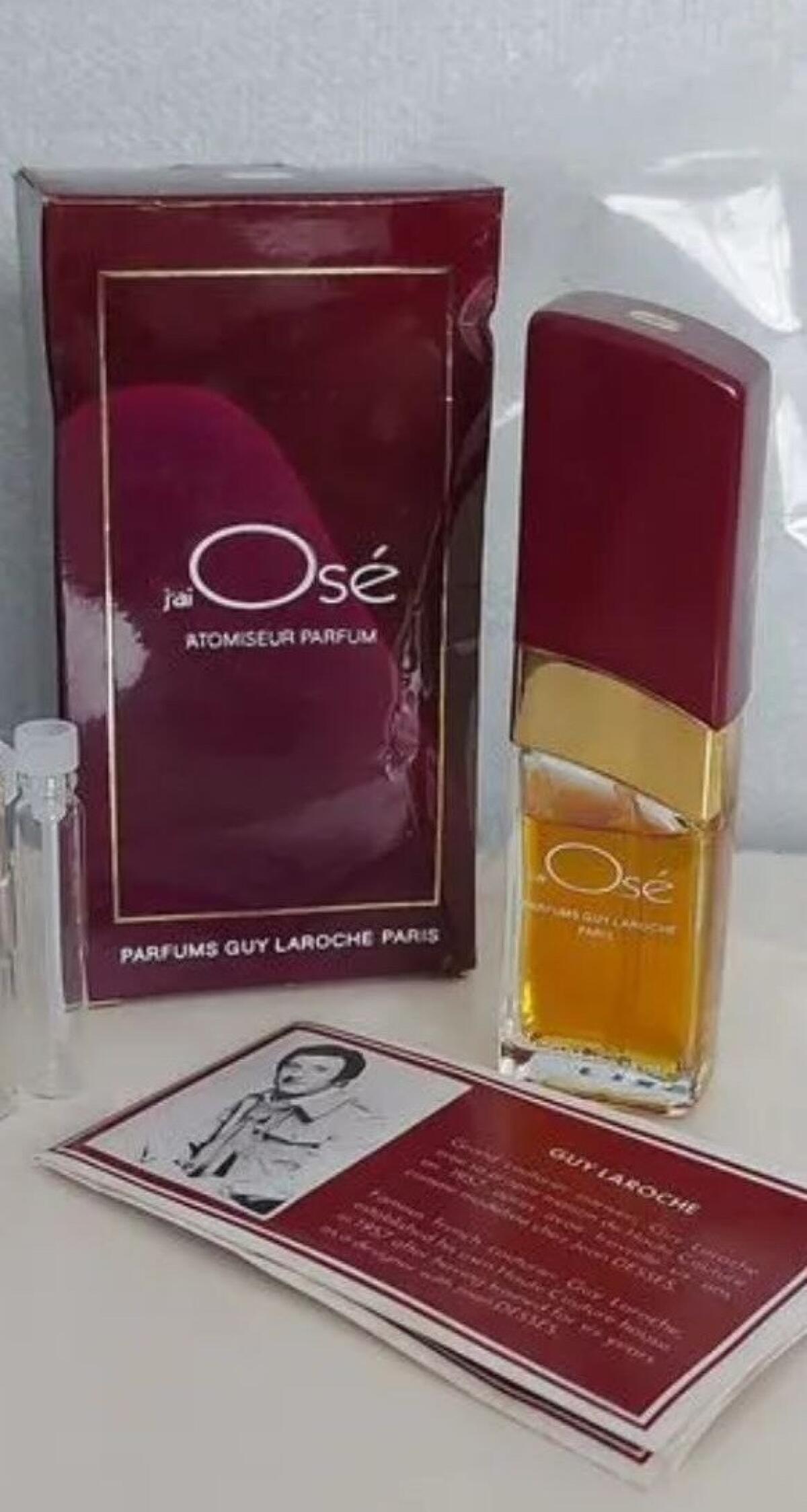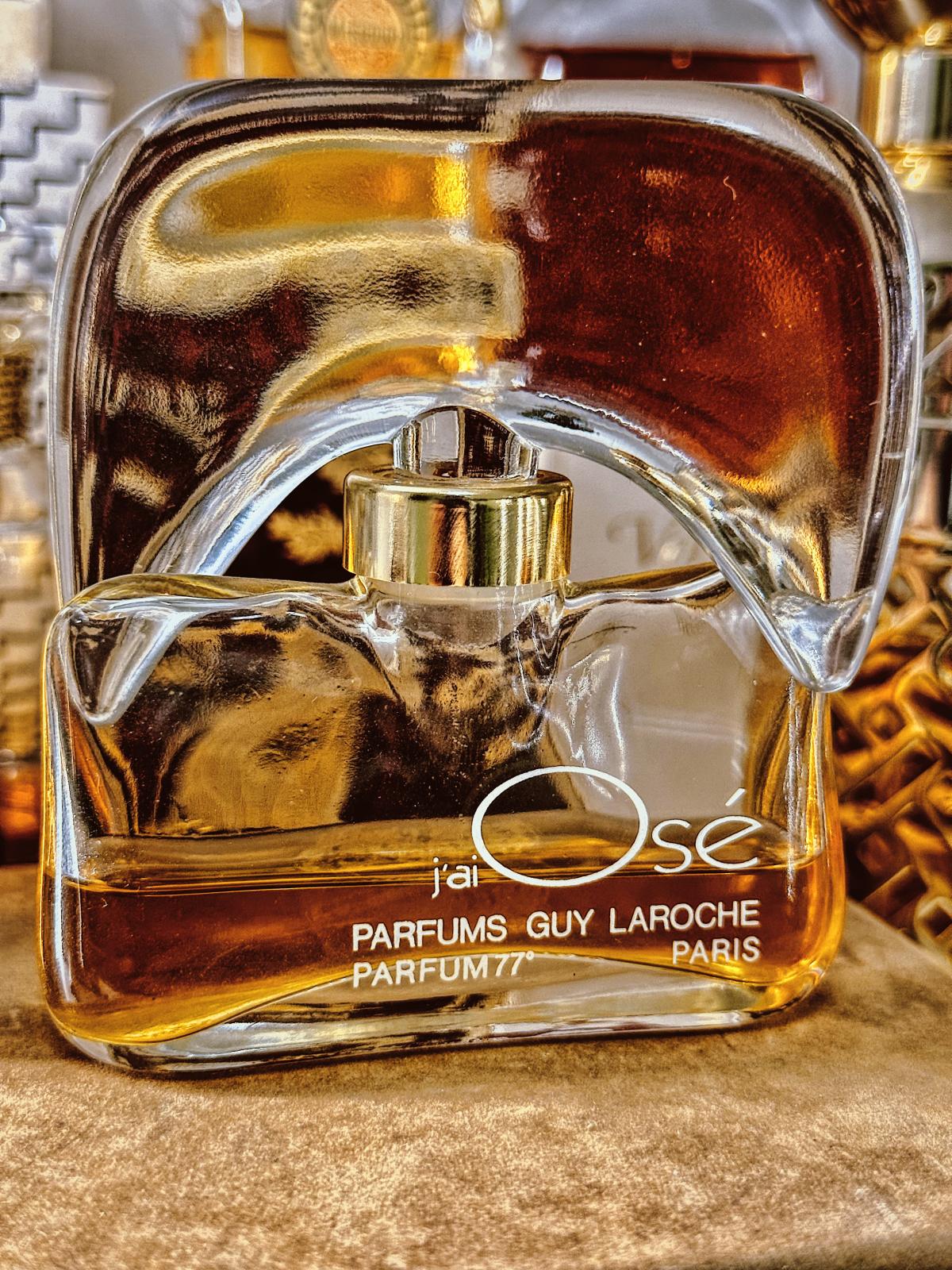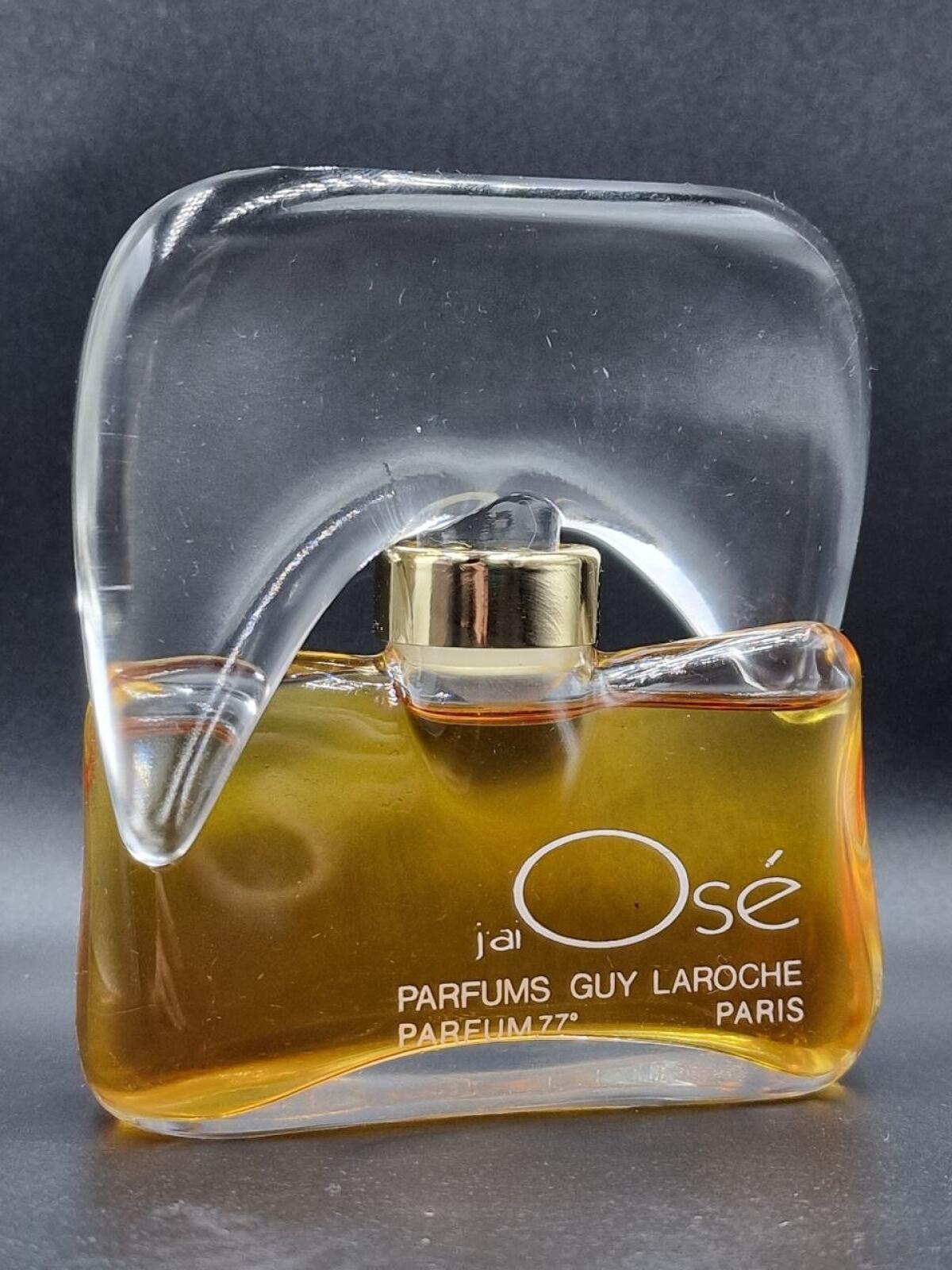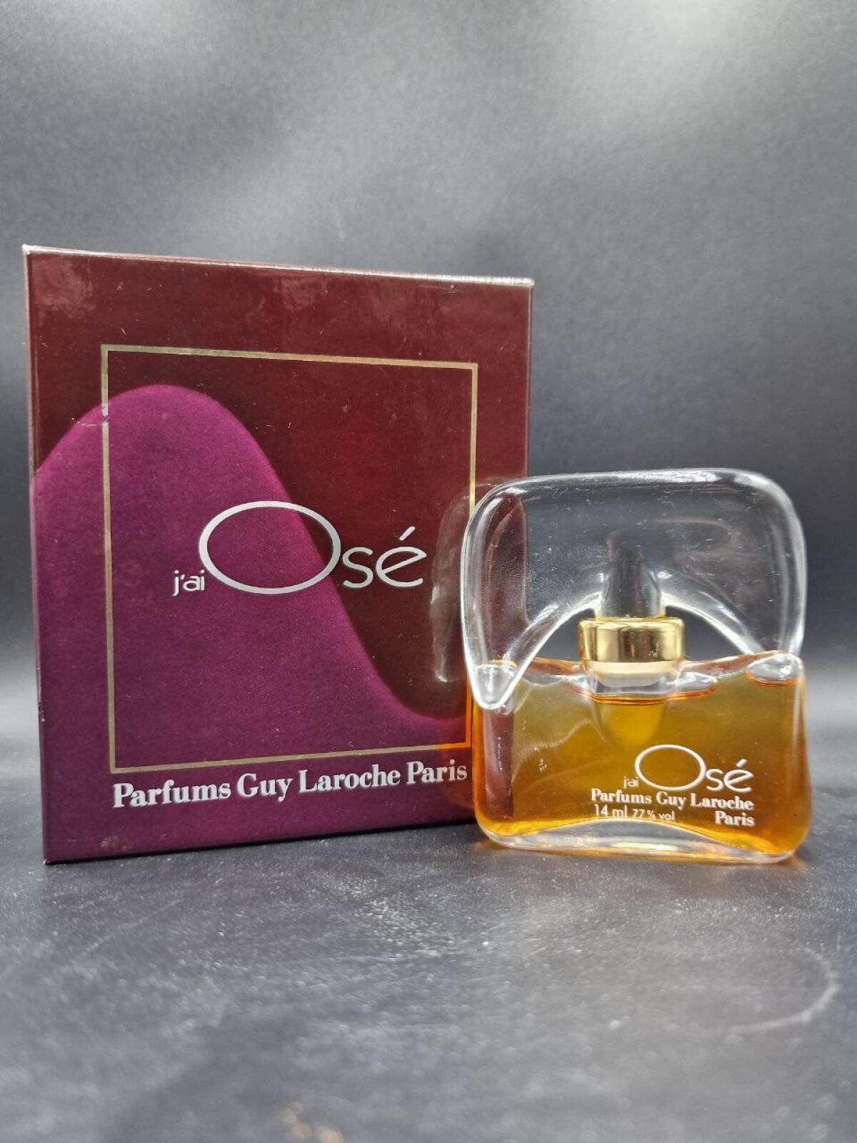 J'ai Osé podle Guy Laroche je Orientální Floral vůně pro ženy. J'ai Osé byl/a uveden/a v roce 1978. "Nosem" za touto vůní je Max Gavarry. Vrchní tóny jsou Aldehydy, Koriandr, Broskev a Citrusy; střední tóny jsouSantalové dřevo, Pačuli, Kořen orris, Vetiver, Cedr, Růže a Jasmín ; základní tóny jsou Dubový mech, Benzoin, Jantar (ambra) a Pižmo.
