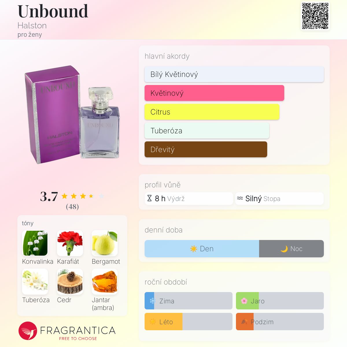 Unbound podle Halston je Floral Fruity vůně pro ženy. Unbound byl/a uveden/a v roce 2001. "Nosem" za touto vůní je Patricia Bilodeau.