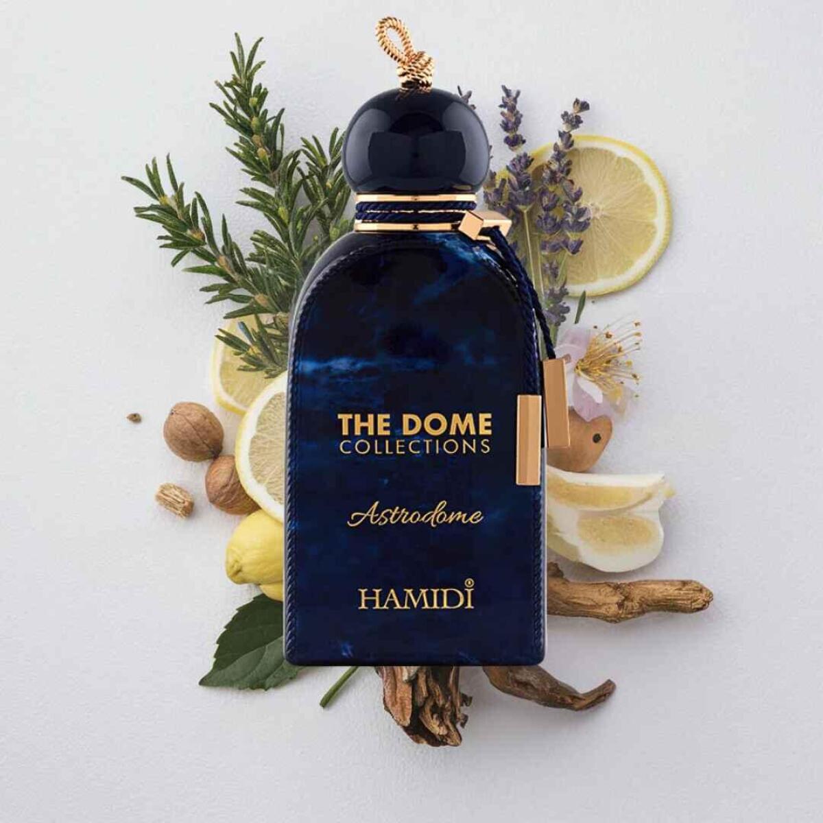 Astrodome podle Hamidi je vůně pro ženy a muže. Astrodome byl/a uveden/a v roce 2023. Vrchní tóny jsou Jalovec, Levandule a Citrón; střední tóny jsouŠpanělské labdanum, Muškátový oříšek a Pomerančový květ ; základní tóny jsou Pižmo, Pačuli a Suché dřevo.