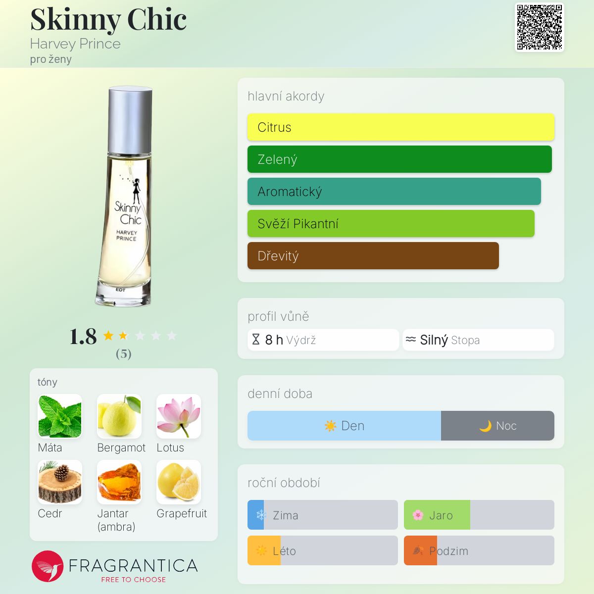 Skinny Chic podle Harvey Prince je Floral Aquatic vůně pro ženy. Skinny Chic byla spuštěna během 2010. Vrchní tóny jsou Máta, Bergamot, Grapefruit a Zelené jablko; střední tóny jsouLotus, Fenykl a Kosatec ; základní tóny jsou Cedr a Jantar (ambra).