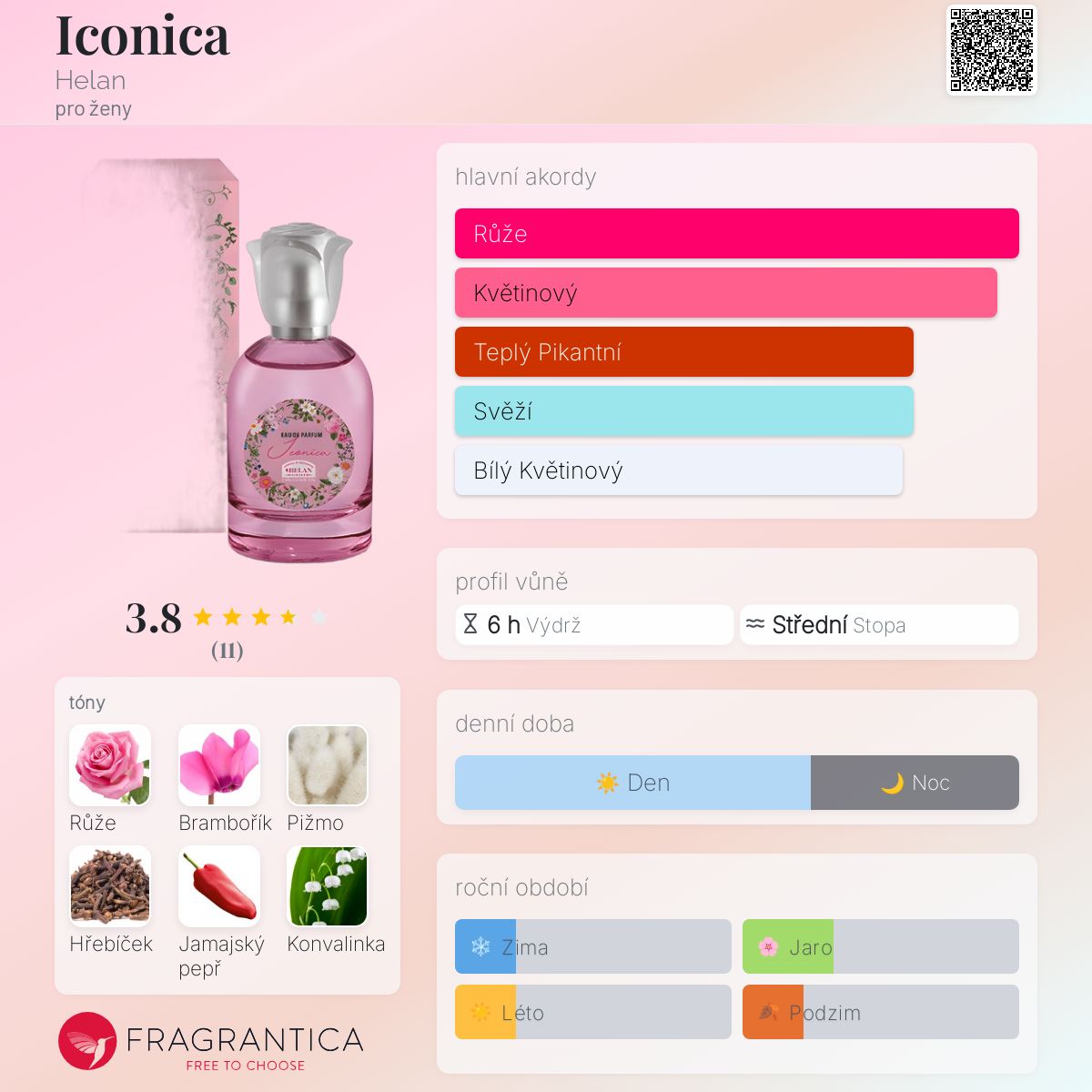 Iconica podle Helan je vůně pro ženy. Vrchní tóny jsou Růže, Hřebíček a Červená chilli paprička; střední tóny jsouBrambořík, Konvalinka a Jasmín ; základní tóny jsou Bílé pižmo a Palisandr.