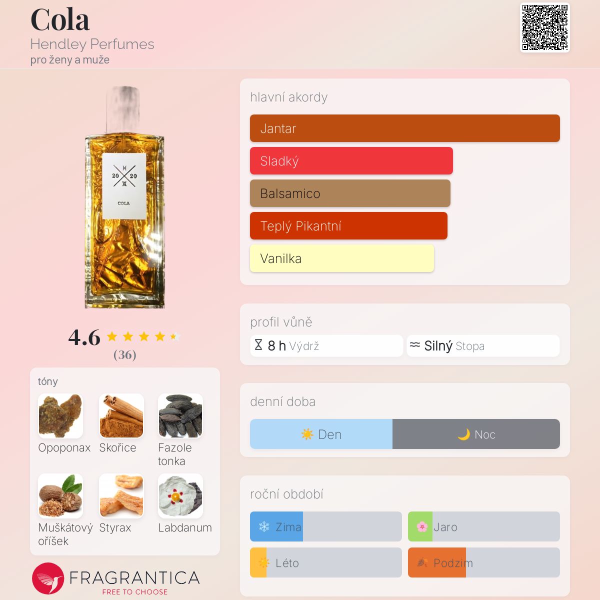 Cola podle Hendley Perfumes je Citrus Gourmand vůně pro ženy a muže. Cola byl/a uveden/a v roce 2020. "Nosem" za touto vůní je Hans Hendley.