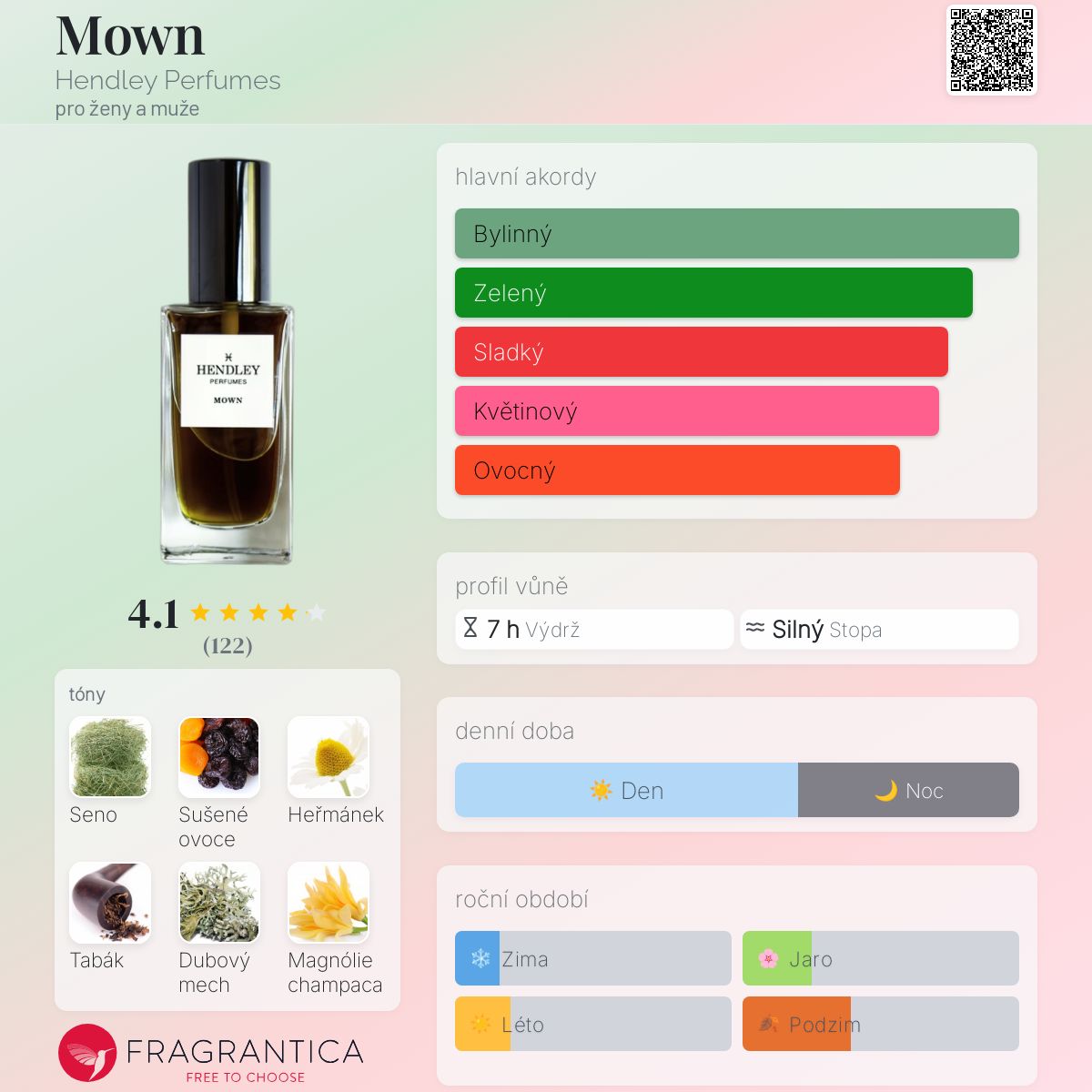 Mown podle Hendley Perfumes je Orientální Fougere vůně pro ženy a muže. Mown byl/a uveden/a v roce 2017. "Nosem" za touto vůní je Hans Hendley.