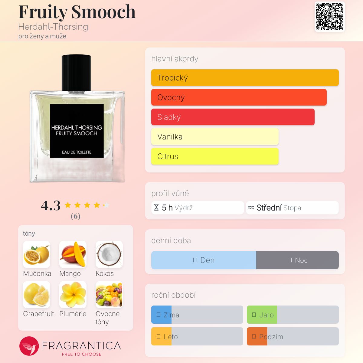 Fruity Smooch podle Herdahl-Thorsing je Aromatic Fruity vůně pro ženy a muže. Fruity Smooch byl/a uveden/a v roce 2022. "Nosem" za touto vůní je Alexander Herdahl-Thorsing.