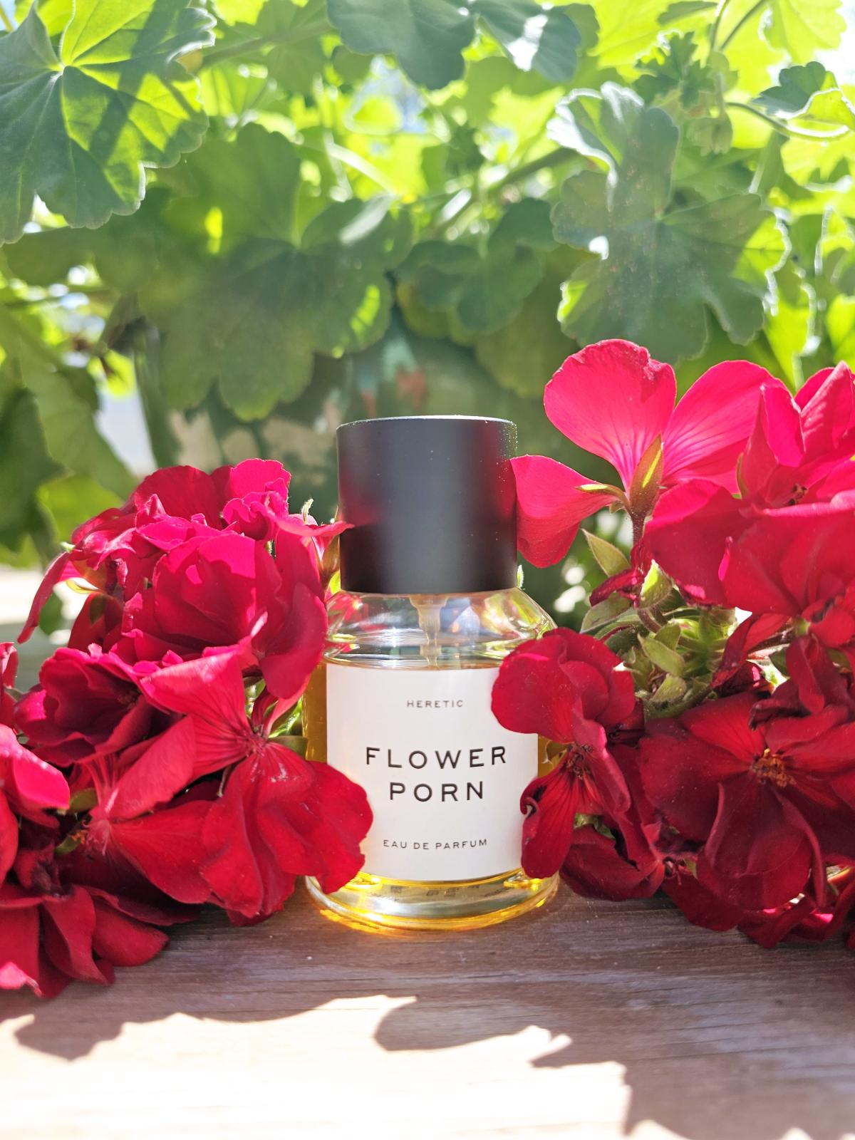 Flower Porn podle Heretic Parfum je Floral Woody Musk vůně pro ženy a muže. Flower Porn byl/a uveden/a v roce 2020. "Nosem" za touto vůní je Douglas Little. Vrchní tóny jsou Pelargónie, Citrón, Koriandr a Černý pepř; střední tóny jsouPomerančový květ, Růže a Fialkový list ; základní tóny jsou Galbanum a Vetiver.