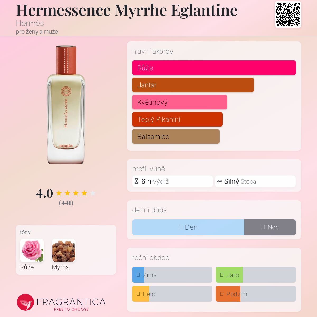 Hermessence Myrrhe Eglantine podle Hermès je Orientální Woody vůně pro ženy a muže. Hermessence Myrrhe Eglantine byl/a uveden/a v roce 2018. "Nosem" za touto vůní je Christine Nagel.