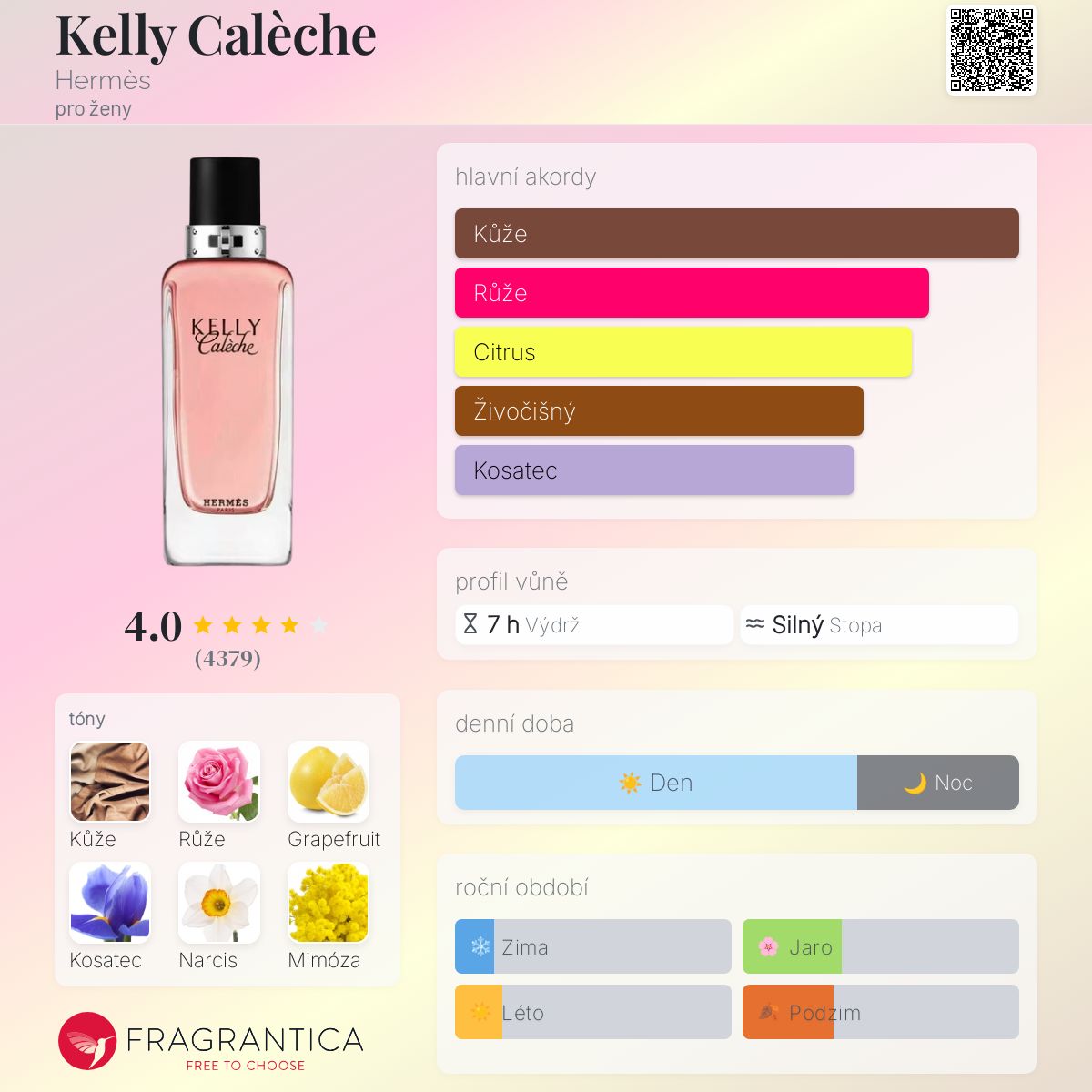Kelly Calèche podle Hermès je Floral Woody Musk vůně pro ženy. Kelly Calèche byl/a uveden/a v roce 2007. "Nosem" za touto vůní je Jean-Claude Ellena. Vrchní tóny jsou Grapefruit, Narcis a Konvalinka; střední tóny jsouRůže, Mimóza a Tuberóza ; základní tóny jsou Kůže a Kosatec. Tento parfém je vítězem oceněníFiFi Award Best National Advertising Campaign / Print 2008 .