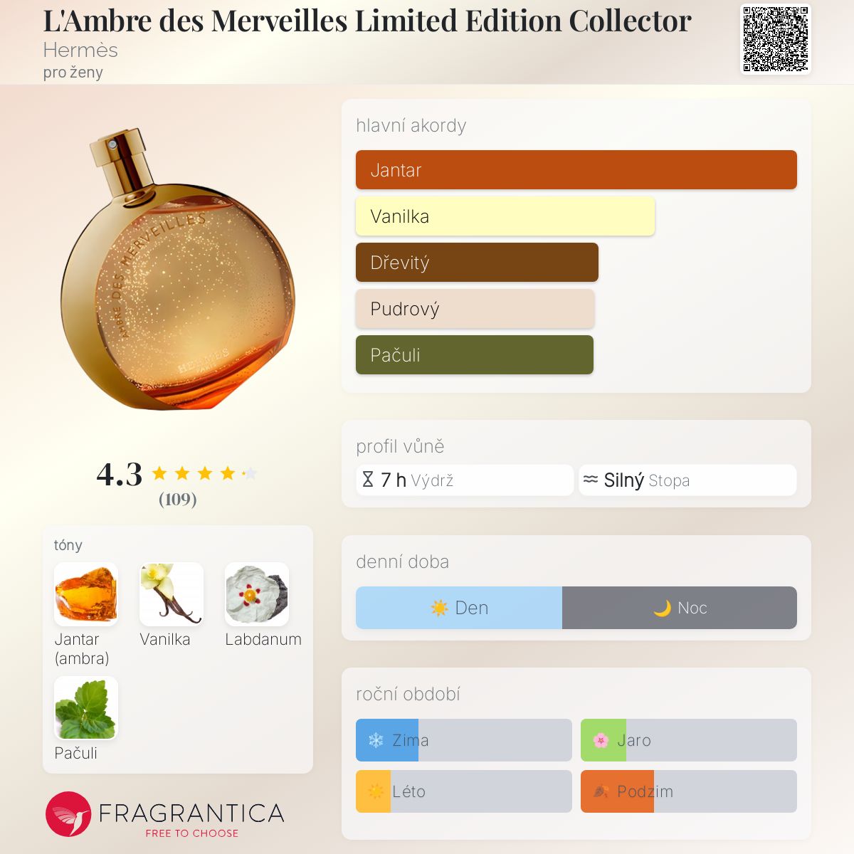 L'Ambre des Merveilles Limited Edition Collector podle Hermès je Orientální vůně pro ženy. L'Ambre des Merveilles Limited Edition Collector byl/a uveden/a v roce 2014. "Nosem" za touto vůní je Jean-Claude Ellena.