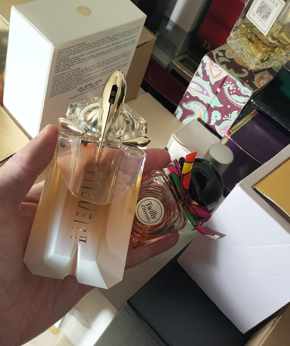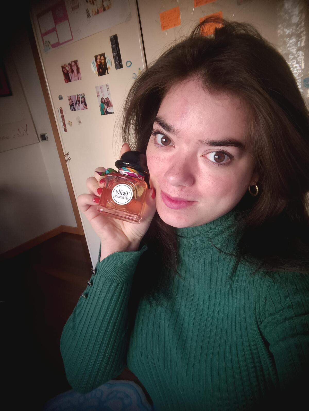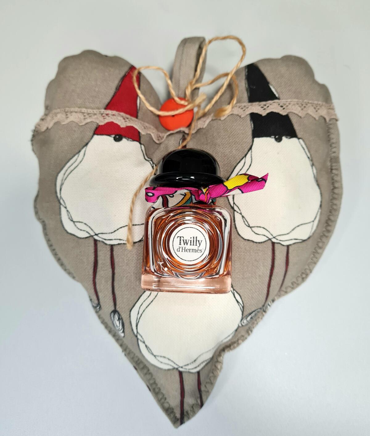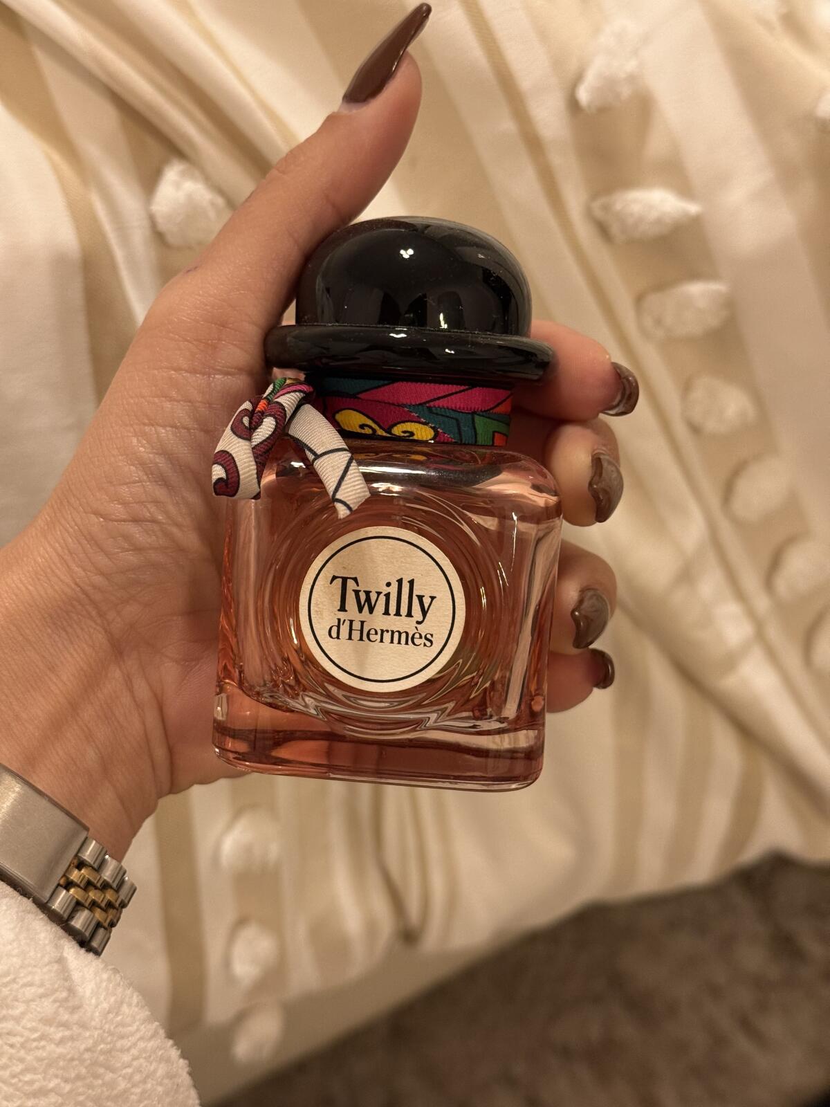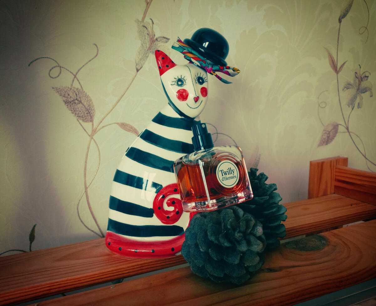 Parfém. Nemyslím si, že je to mistrovské dílo, určitě má Hermes ve svém katalogu nádherné parfémy a Twilly mému nosu nesedí. Dolcino, jemně květinový, se po dvaceti minutách zlepší... Christine Nagel však neměla v úmyslu vytvořit vážný parfém, jak sama říká, inspirovala se "pozorováním kmene mladých dívek, které nosily hedvábné jha Hermès", měla v úmyslu dát vůni odvážný a hravý svět mladých dívek, v tom pro mě byla mistrem, protože všechno v této vůni mi připomíná frivolní a stále ještě dětský svět dospívajících dívek.