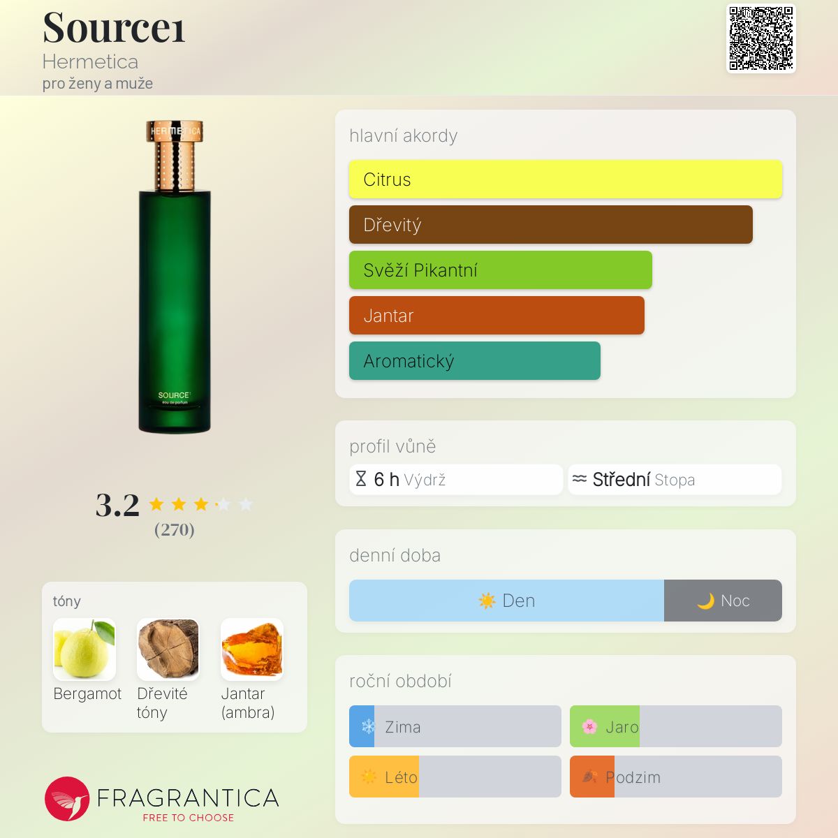 Source1 podle Hermetica je Citrus vůně pro ženy a muže. Source1 byl/a uveden/a v roce 2018.