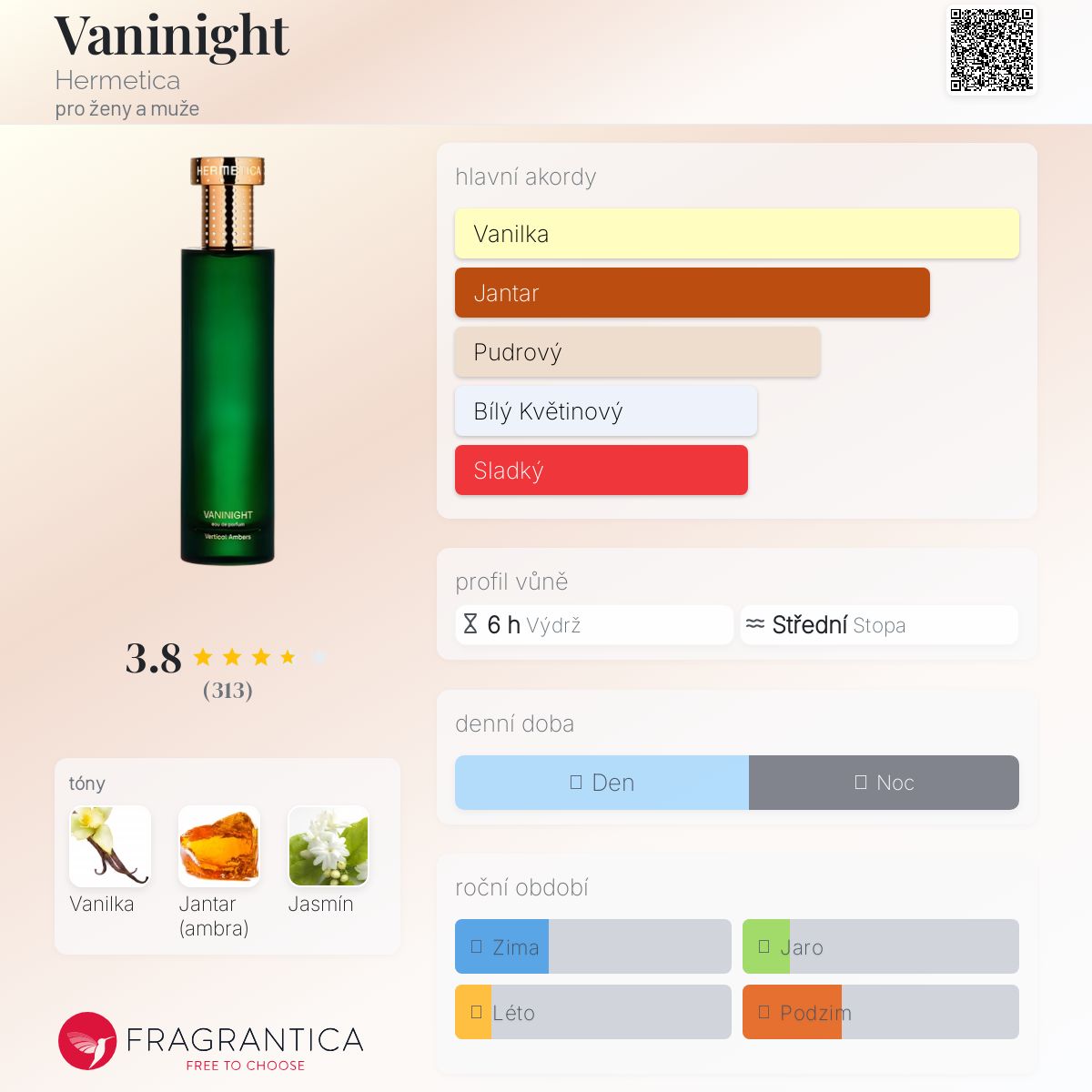 Vaninight podle Hermetica je Orientální Vanilla vůně pro ženy a muže. Vaninight byl/a uveden/a v roce 2018. "Nosem" za touto vůní je Philippe Paparella-Paris.