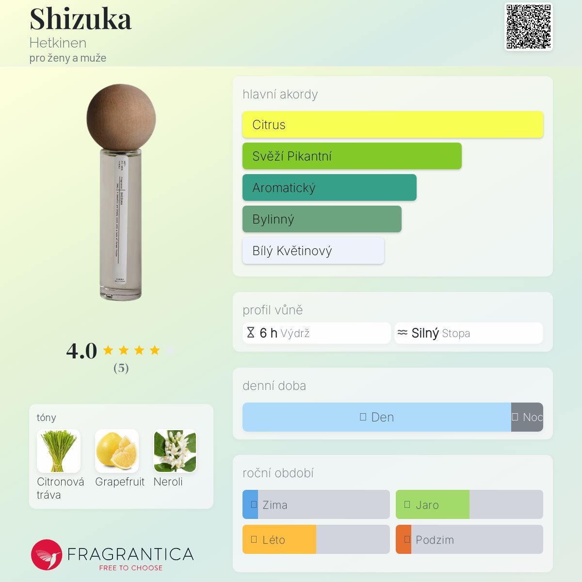 Hodnocení parfému 4.00 z 5 s 5 hlasy