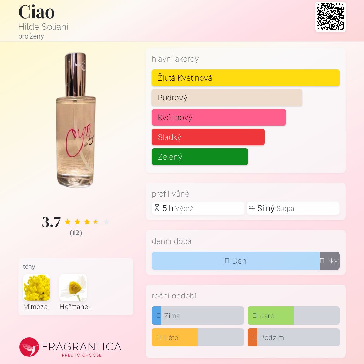 Ciao podle Hilde Soliani je Floral vůně pro ženy. Ciao byl/a uveden/a v roce 2015. "Nosem" za touto vůní je Hilde Soliani.