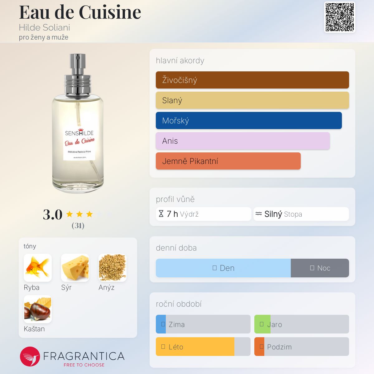 Eau de Cuisine podle Hilde Soliani je vůně pro ženy a muže. Eau de Cuisine byl/a uveden/a v roce 2019. "Nosem" za touto vůní je Hilde Soliani.