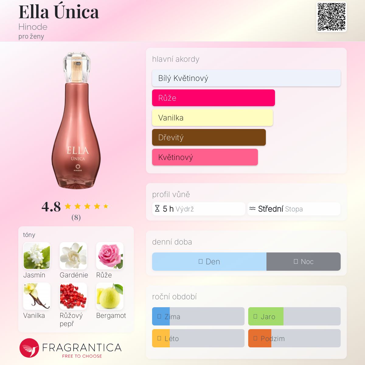 Ella Única podle Hinode je Floral vůně pro ženy. Ella Única byl/a uveden/a v roce 2023. Vrchní tóny jsou Růžový pepř, Bergamot a Hruška; střední tóny jsouJasmín, Gardénie a Růže ; základní tóny jsou Vanilka, Santalové dřevo a Pačuli.