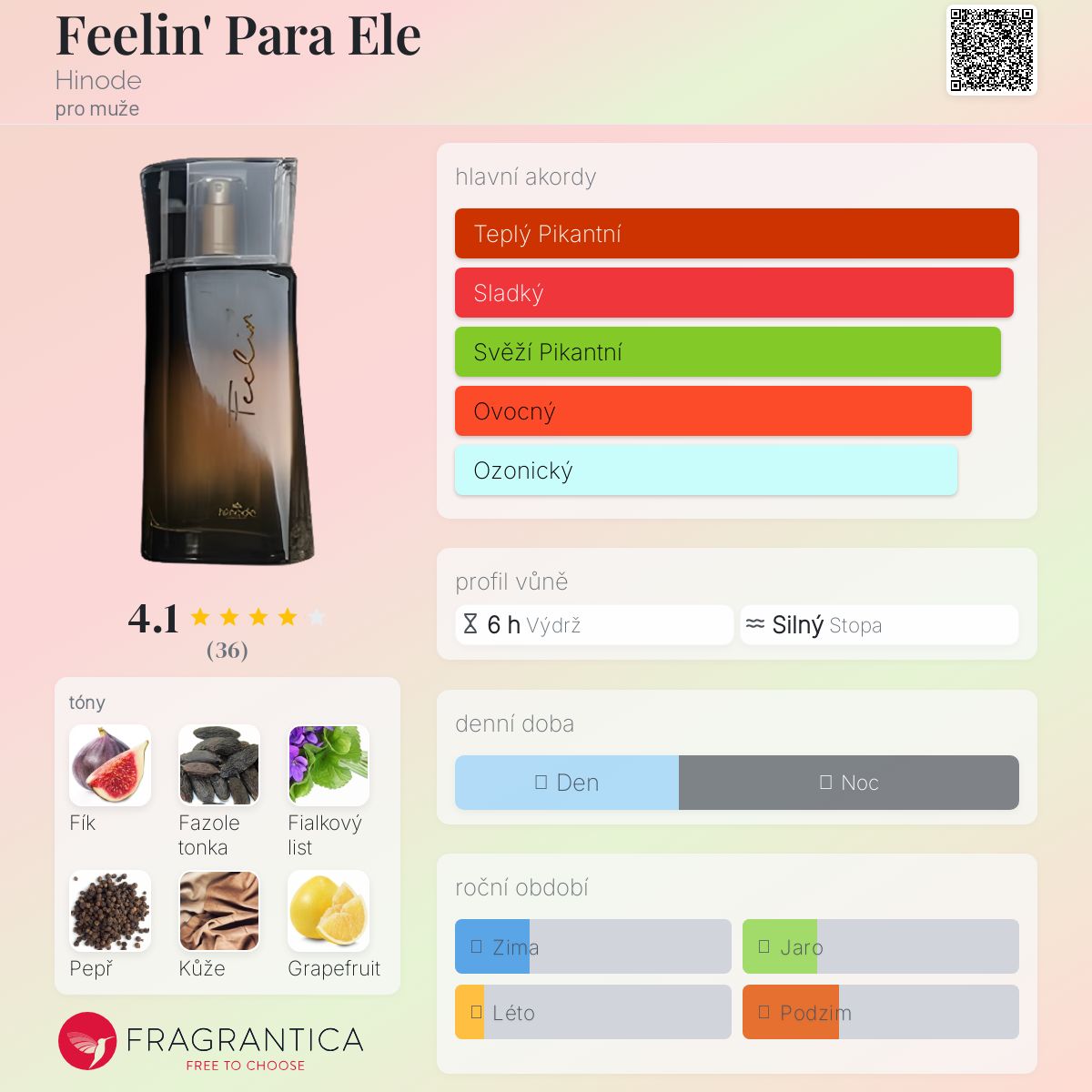 Feelin' Para Ele podle Hinode je Leather vůně pro muže. Feelin' Para Ele byl/a uveden/a v roce 2017. "Nosem" za touto vůní je Eve Miralles.