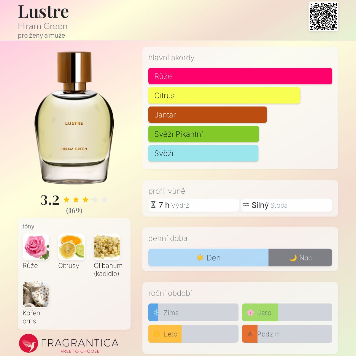 Lustre podle Hiram Green je Floral vůně pro ženy a muže. Lustre byl/a uveden/a v roce 2019. "Nosem" za touto vůní je Hiram Green.