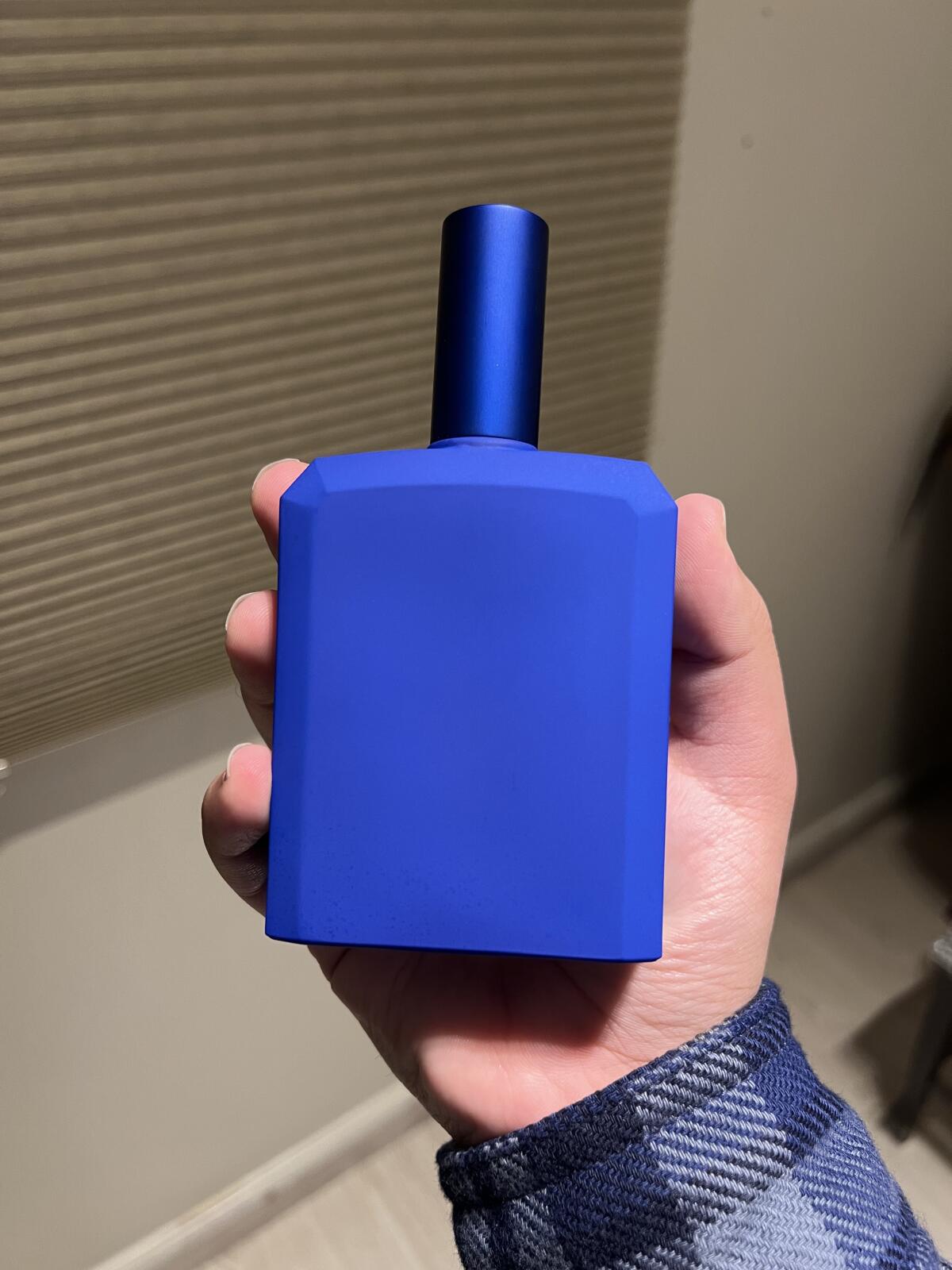 Jste v mučírně, kde vás bodají do obličeje noži pokrytými ostrou a hořkou pomerančovou šťávou a zároveň vás zaživa pálí oheň, který je poháněn opravdu silným zuhelnatělým/kouřovým pačuli. Chce se vám křičet: "Pomoc!", ale nenapadají vás jiná slova než ostrá, protože v tuhle chvíli je ostré úplně všechno. Na závěr vám někdo začne do ran vtírat hustý med a vy omdlíte. This Is Not A Blue Bottle od Histoires de Parfums.