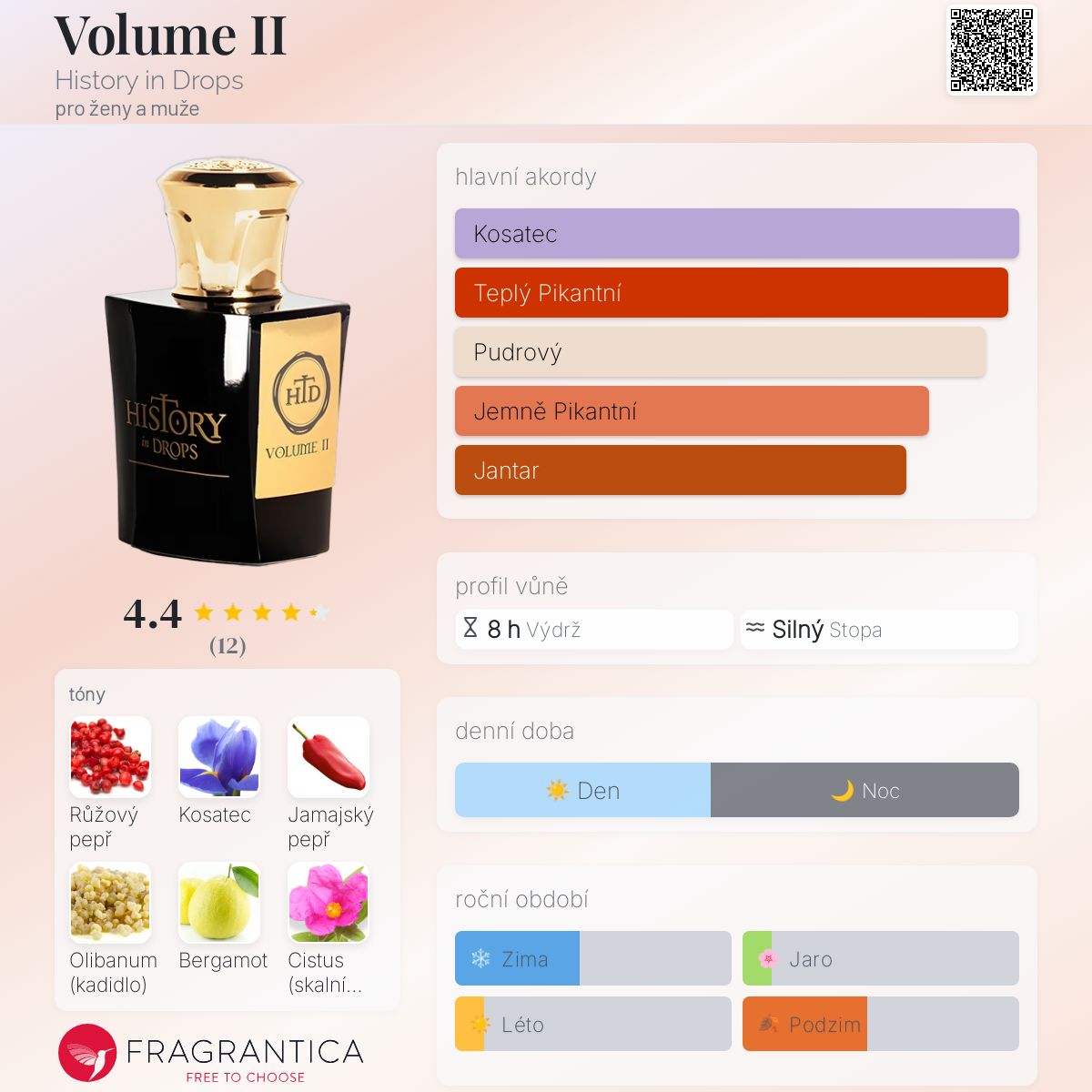 Volume II podle History in Drops je Aromatic vůně pro ženy a muže. Volume II byl/a uveden/a v roce 2021. "Nosem" za touto vůní je Daniel Josier. Vrchní tóny jsou Růžový pepř, Chilli papričky a Bergamot; střední tóny jsouKosatec, Olibanum a Skalní růže ; základní tóny jsou Pačuli, Vanilka a Pižmo.