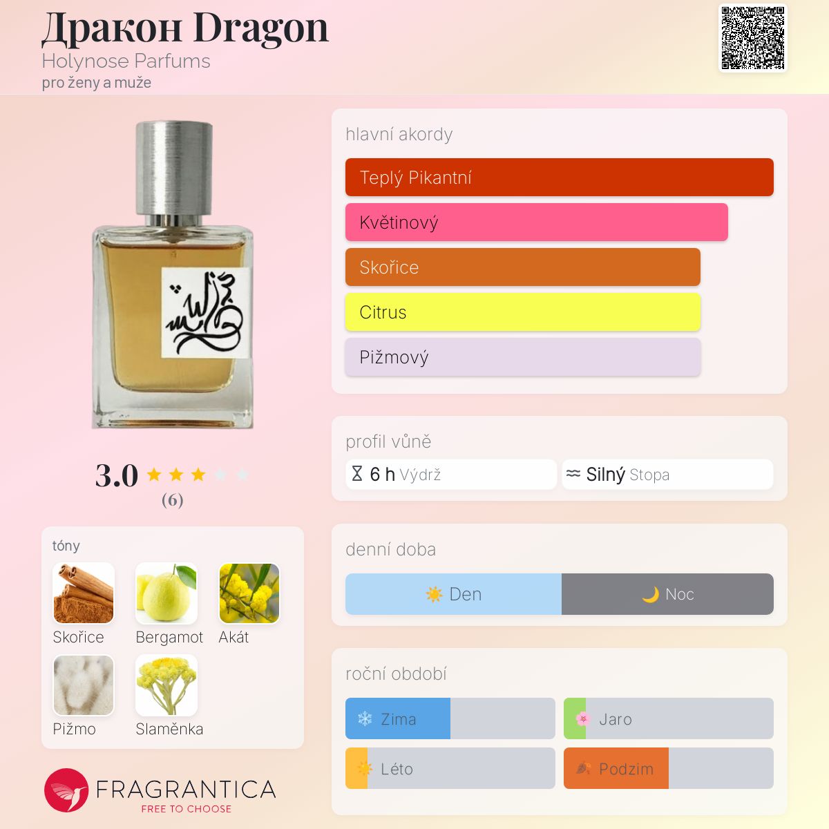 Дракон Dragon podle Holynose Parfums je Orientální Spicy vůně pro ženy a muže. Дракон Dragon byl/a uveden/a v roce 2019. "Nosem" za touto vůní je Maria Golovina.