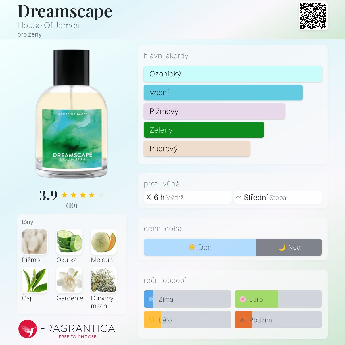 Dreamscape podle House Of James je vůně pro ženy. Toto je nová vůně. Dreamscape byl/a uveden/a v roce 2024. "Nosem" za touto vůní je Justin James.