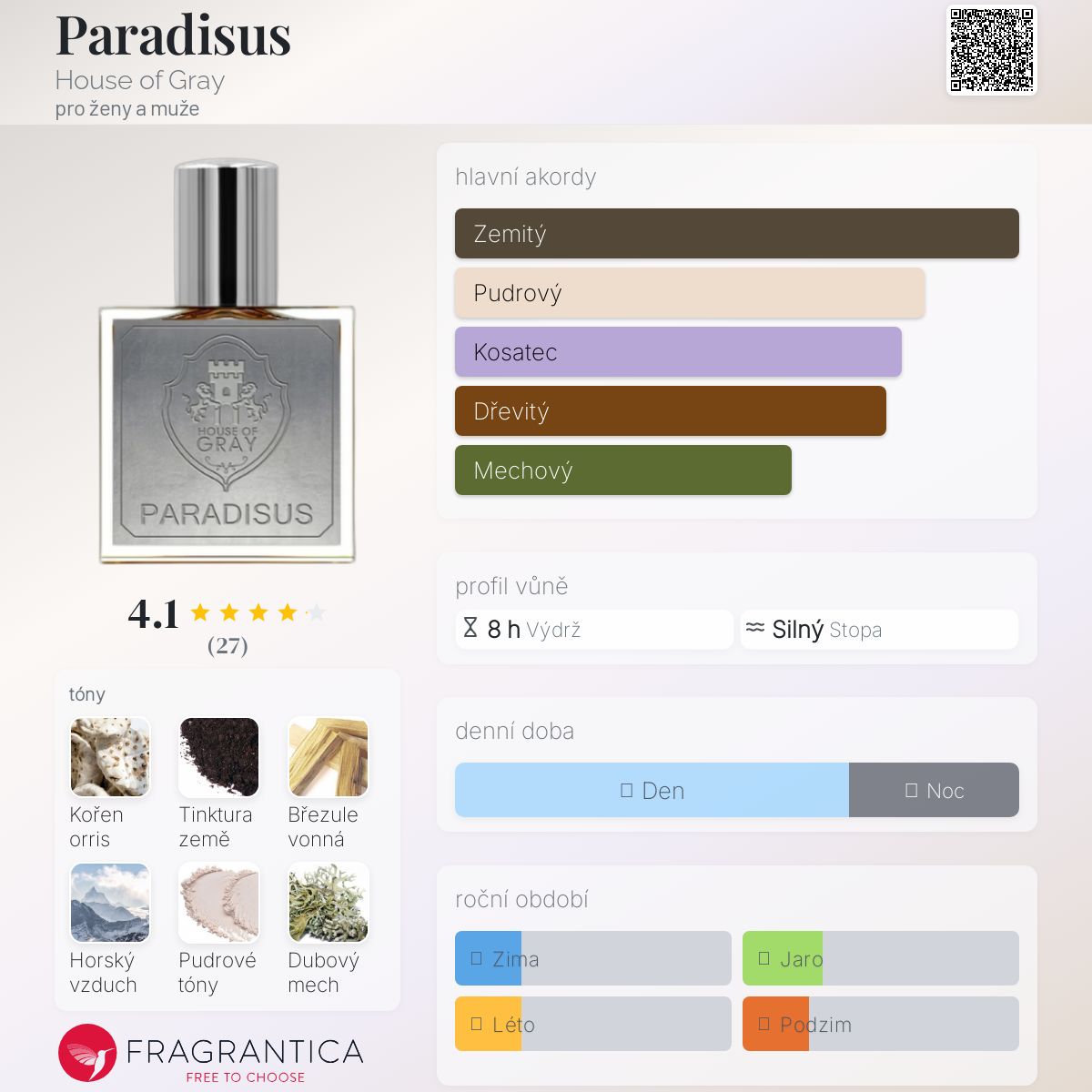 Paradisus podle House of Gray je Woody Aromatic vůně pro ženy a muže. Paradisus byl/a uveden/a v roce 2018. Paradisus byl/a vytvořen/a Eugene Au a Emrys Au.