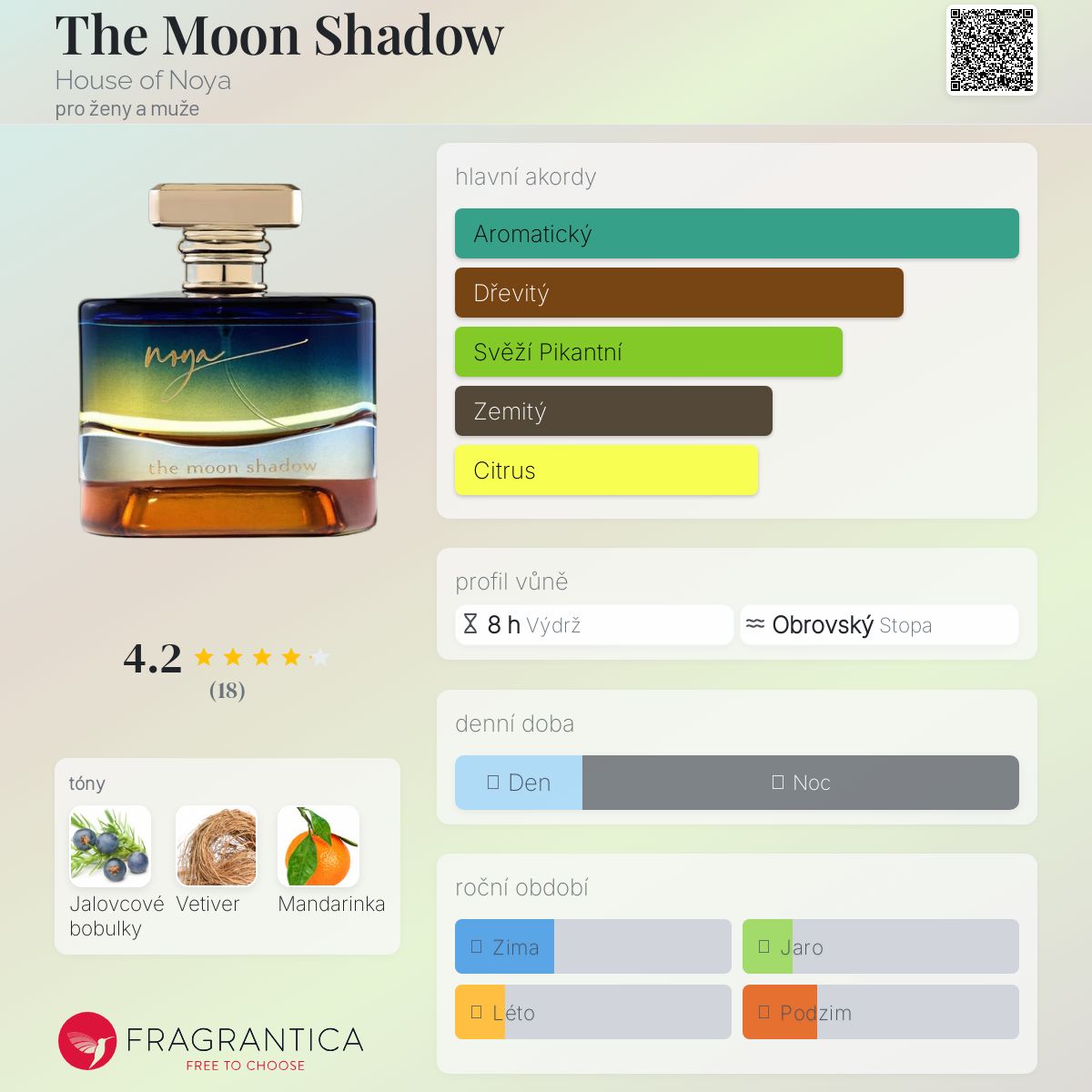 The Moon Shadow podle House of Noya je Orientální Woody vůně pro ženy a muže. The Moon Shadow byl/a uveden/a v roce 2023. "Nosem" za touto vůní je Lucas Sieuzac. Vrchní tón je Mandarinka ; střední tón jeJalovcové bobulky ; základní tón je Haitský vetiver.