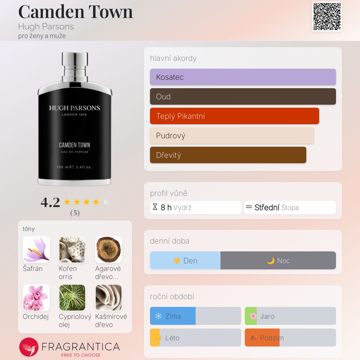 Camden Town podle Hugh Parsons je Orientální Woody vůně pro ženy a muže. Toto je nová vůně. Camden Town byl/a uveden/a v roce 2024. Vrchní tóny jsou Šafrán, Černá orchidej a Elimi; střední tóny jsouOrris, Agarové dřevo (oud), Cypriolový olej a Santalové dřevo ; základní tóny jsou Kašmírové dřevo, Pačuli a Dubový mech.