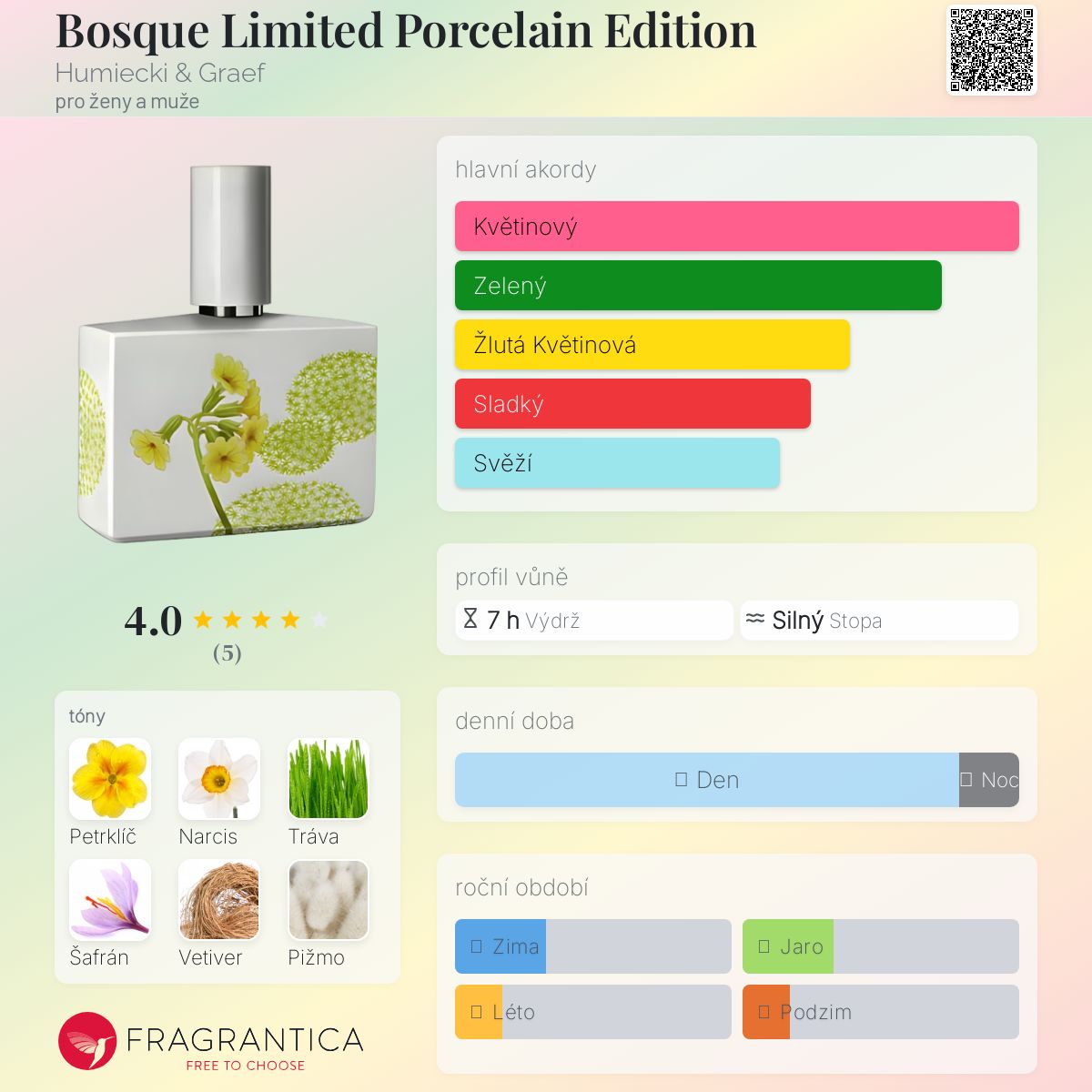 Bosque Limited Porcelain Edition podle Humiecki & Graef je Floral Woody Musk vůně pro ženy a muže. Bosque Limited Porcelain Edition byl/a uveden/a v roce 2011.
