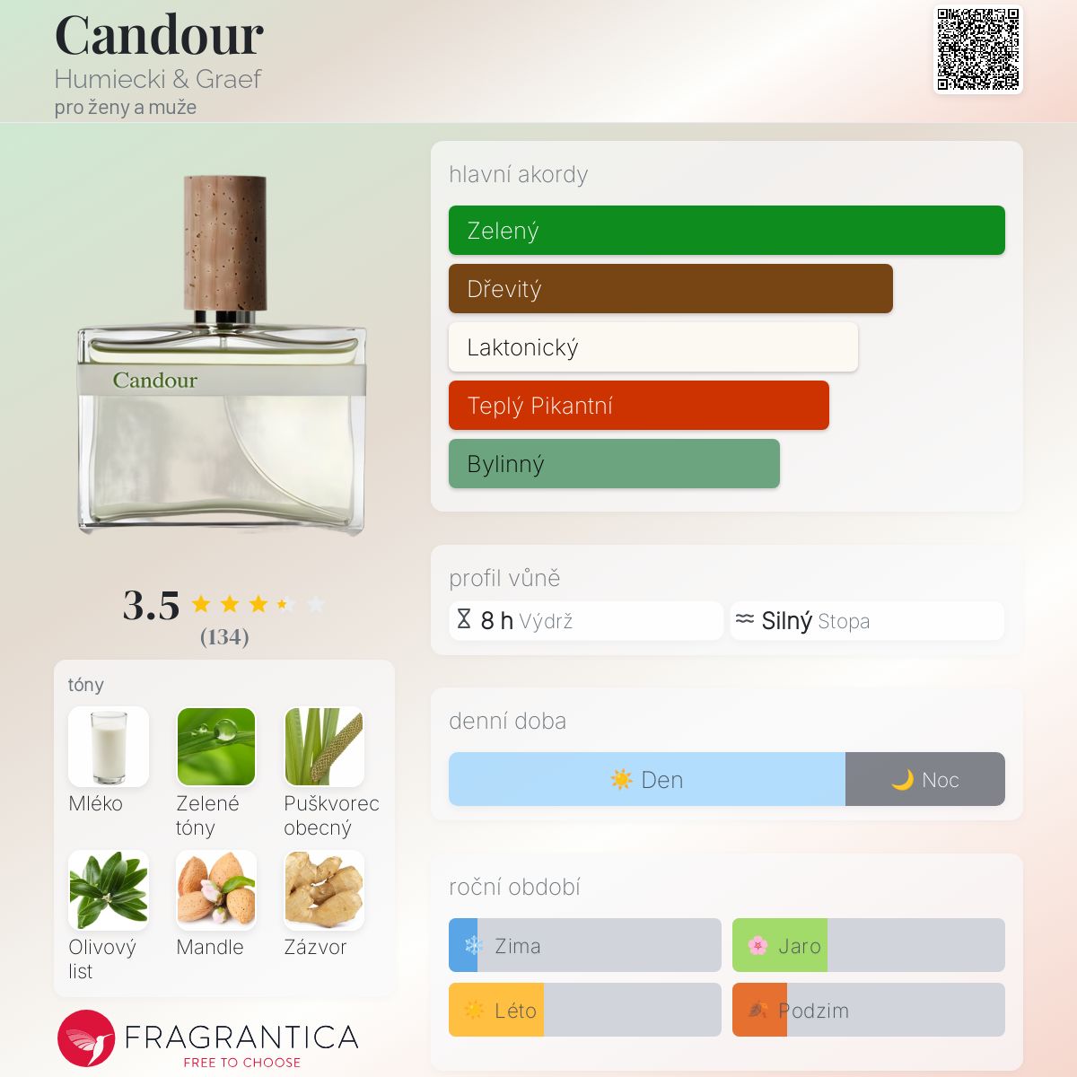 Candour podle Humiecki & Graef je Aromatic vůně pro ženy a muže. Candour byl/a uveden/a v roce 2012. Candour byl/a vytvořen/a Christophe Laudamiel a Christophe Hornetz.