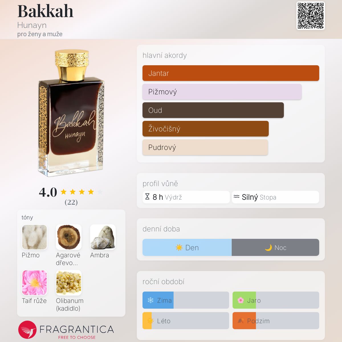 Bakkah podle Hunayn je vůně pro ženy a muže. Toto je nová vůně. Bakkah byl/a uveden/a v roce 2024. "Nosem" za touto vůní je Adill Ali. Vrchní tón je Kadidlo ; střední tón jeTaif růže ; základní tóny jsou Přírodní pižmo, Agarové dřevo (oud) a Ambra.
