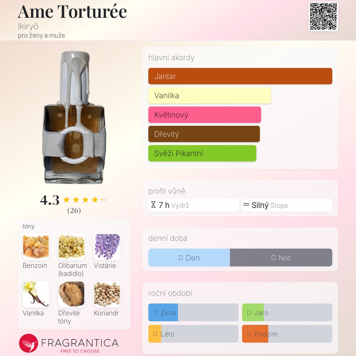 Ame Torturée podle Ikiryō je vůně pro ženy a muže. Ame Torturée byl/a uveden/a v roce 2016. "Nosem" za touto vůní je Vincent of Dreamhouse.