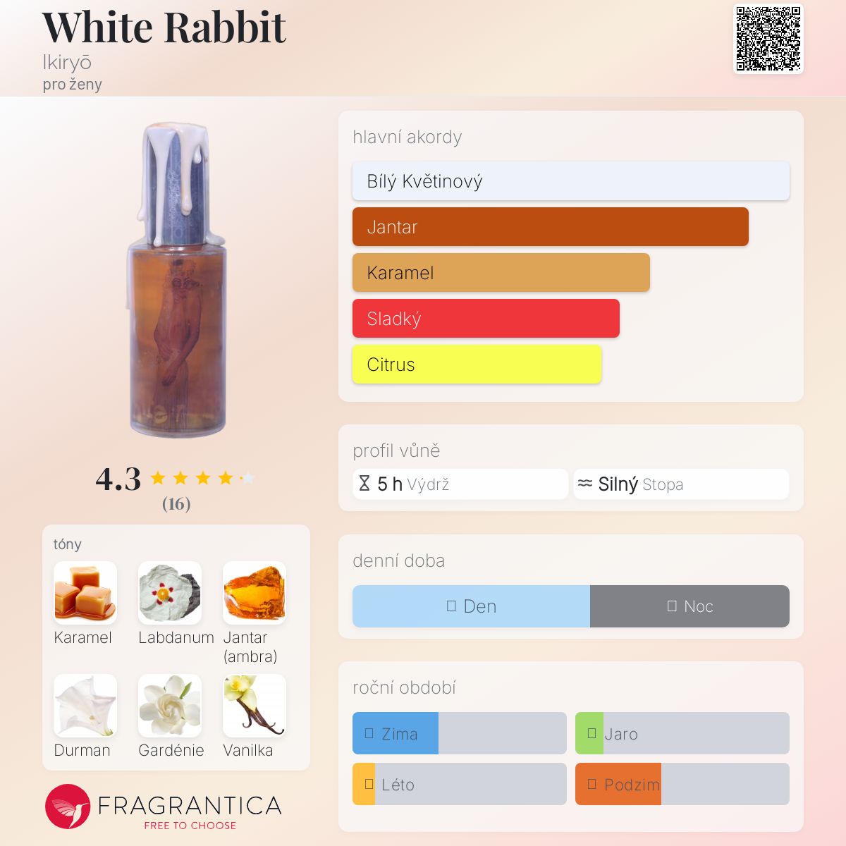 White Rabbit podle Ikiryō je Floral vůně pro ženy. White Rabbit byl/a uveden/a v roce 2017. "Nosem" za touto vůní je Vincent of Dreamhouse.